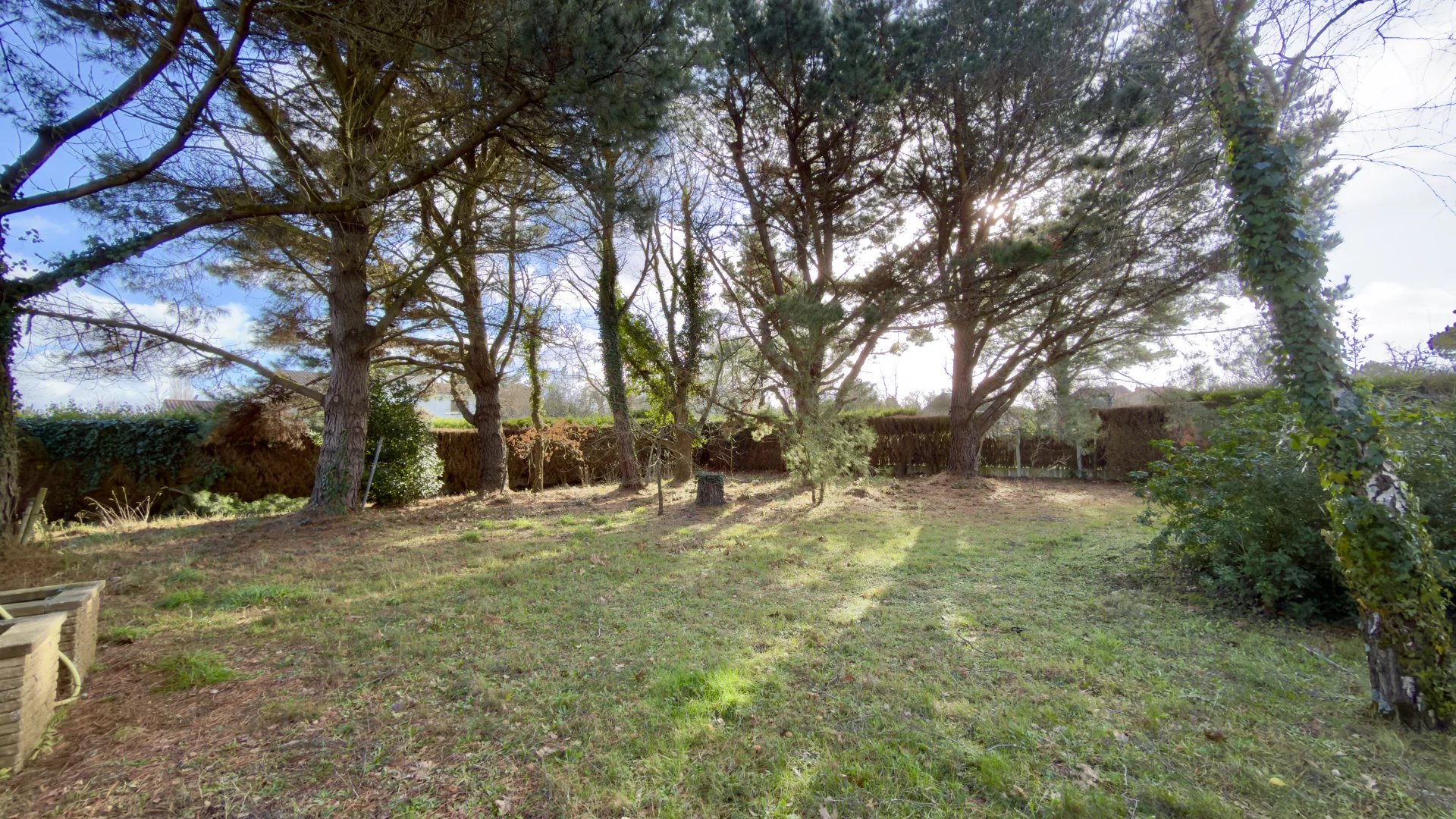 Édifiée sur une parcelle arborée de 1 527 m², la propriété offre un environnement calme et intime. Le jardin comprend également un cabanon et un puits.