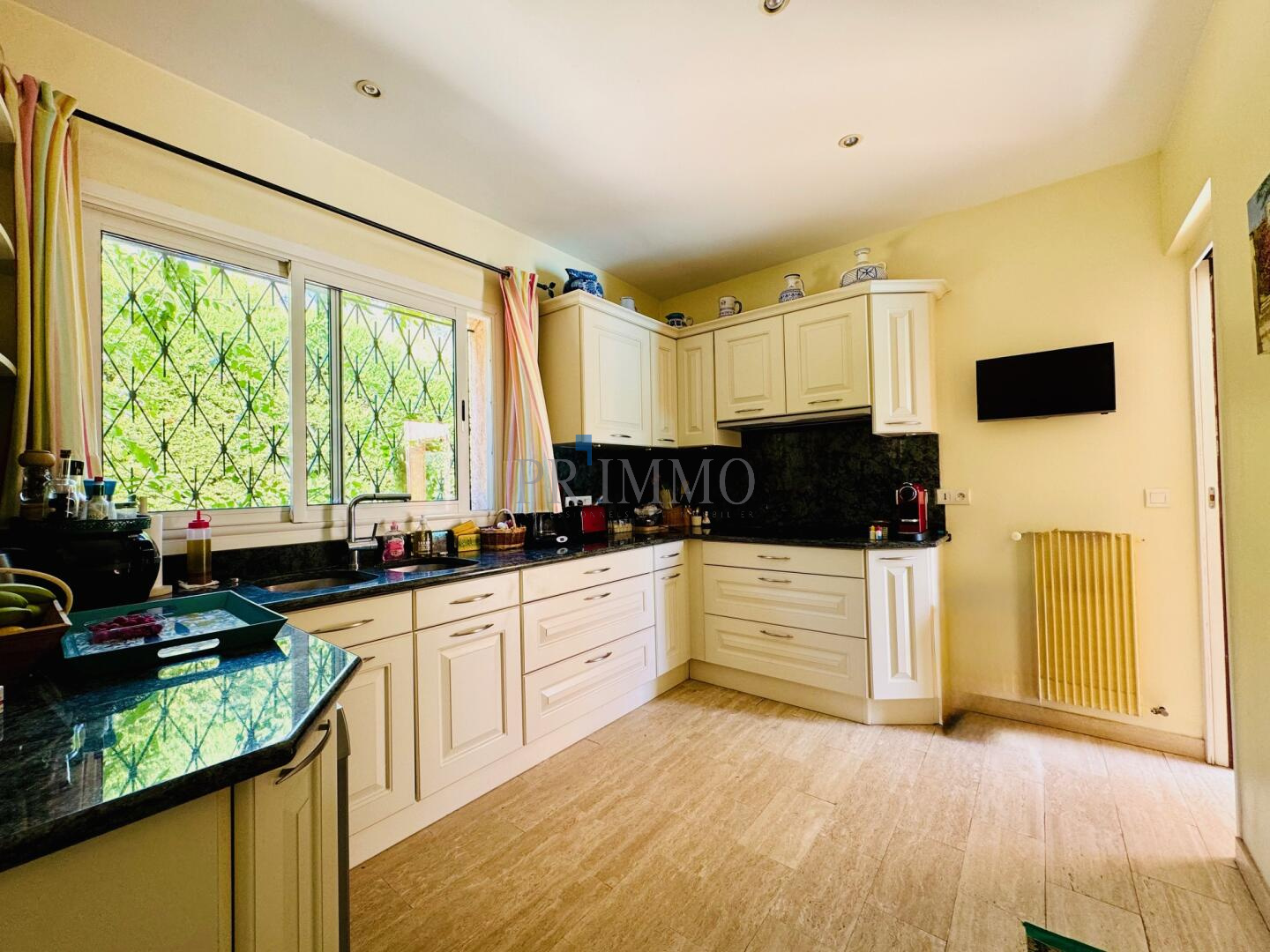 Dans toute la maison, le travertin habille sols et escaliers, apportant une élégance intemporelle. Toutes les pièces de vie profitent d'une exposition plein sud, inondant la villa de lumière. Une buanderie et un garage de 25 m2 viennent compléter l'ensemble. Entre les deux bâtisses, une cour intérieure intimiste, agrémentée d'une jolie fontaine provençale, confère au lieu un charme authentique et une atmosphère conviviale.