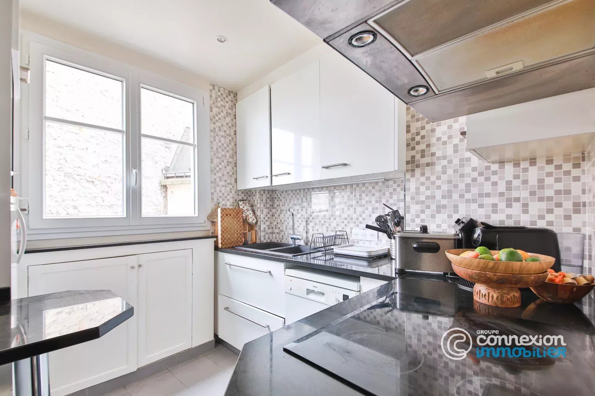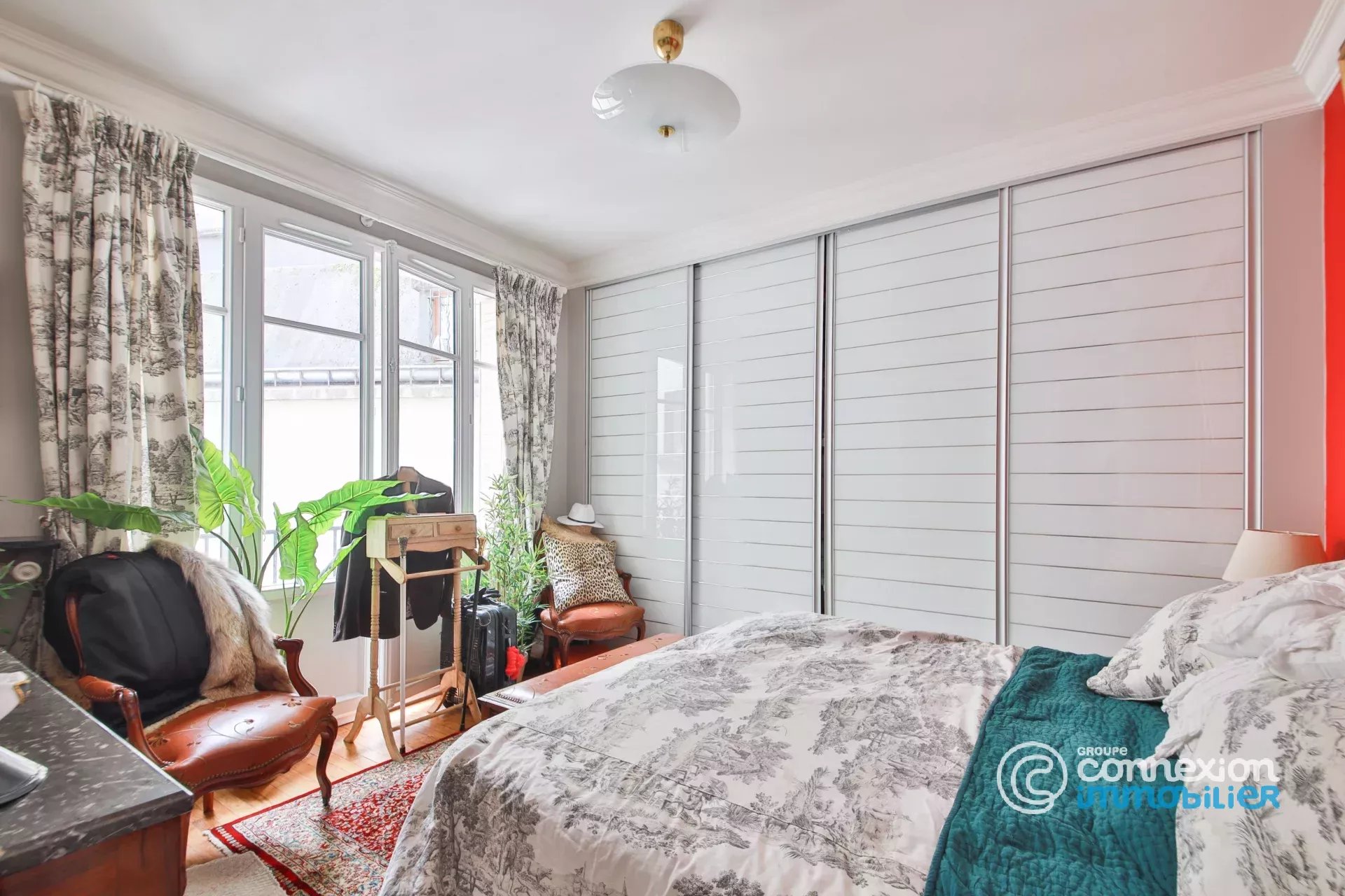 Le bien se compose : d'une entrée, d'un séjour lumineux avec bow-window, d'une cuisine indépendante, aménagée et équipée, de deux belles chambres avec grands dressings et balcons, l'une étant sur sur cour au calme absolu, l'autre étant sur rue donnant sur un petit balconnet, une salle de douche avec toilette, un espace buanderie et enfin un deuxième toilette invité.