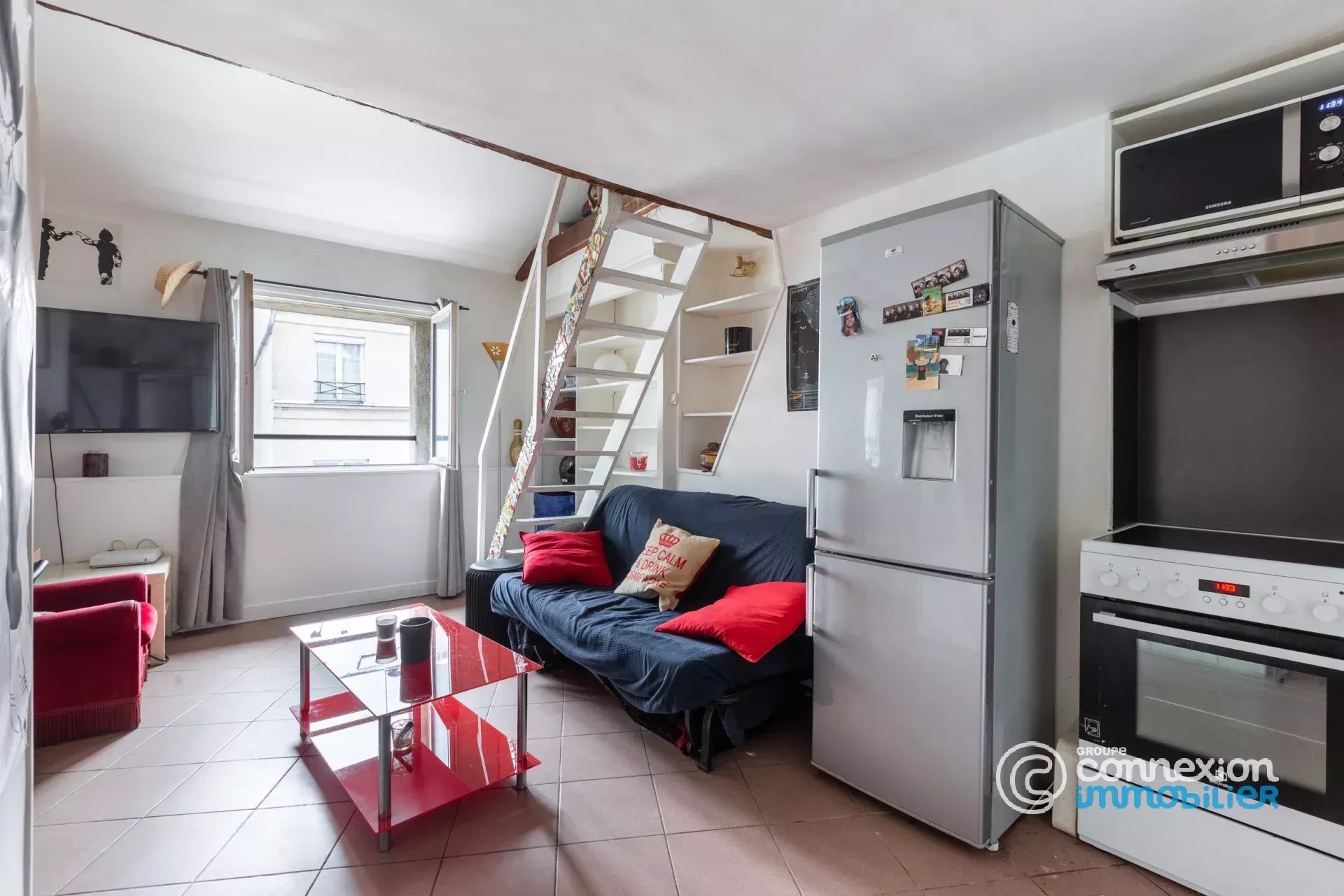 75009 - Votre agence Connexion Immobilier Trudaine vous propose rue Rochechouart à deux pas du métro Cadet, dans un immeuble 1880 en parfait état et aux parties communes récemment refaites, au 4e et dernier étage par escalier Un appartement de 38m2 carrez et 46,74 au sol en duplex, composé d'une entrée, d'un grand séjour cuisine orienté Ouest avec vue Ciel dégagée, une chambre et une salle de douche avec WC séparé. A l'étage une chambre d'enfants ou un bureau avec un point d'eau. A rafraîchir, beaucoup de potentiel : à visiter très vite !