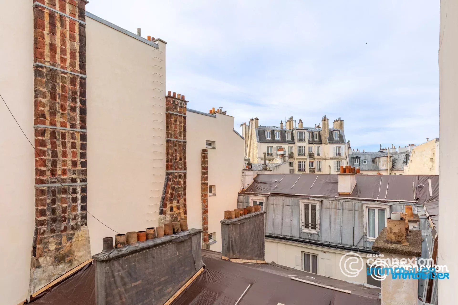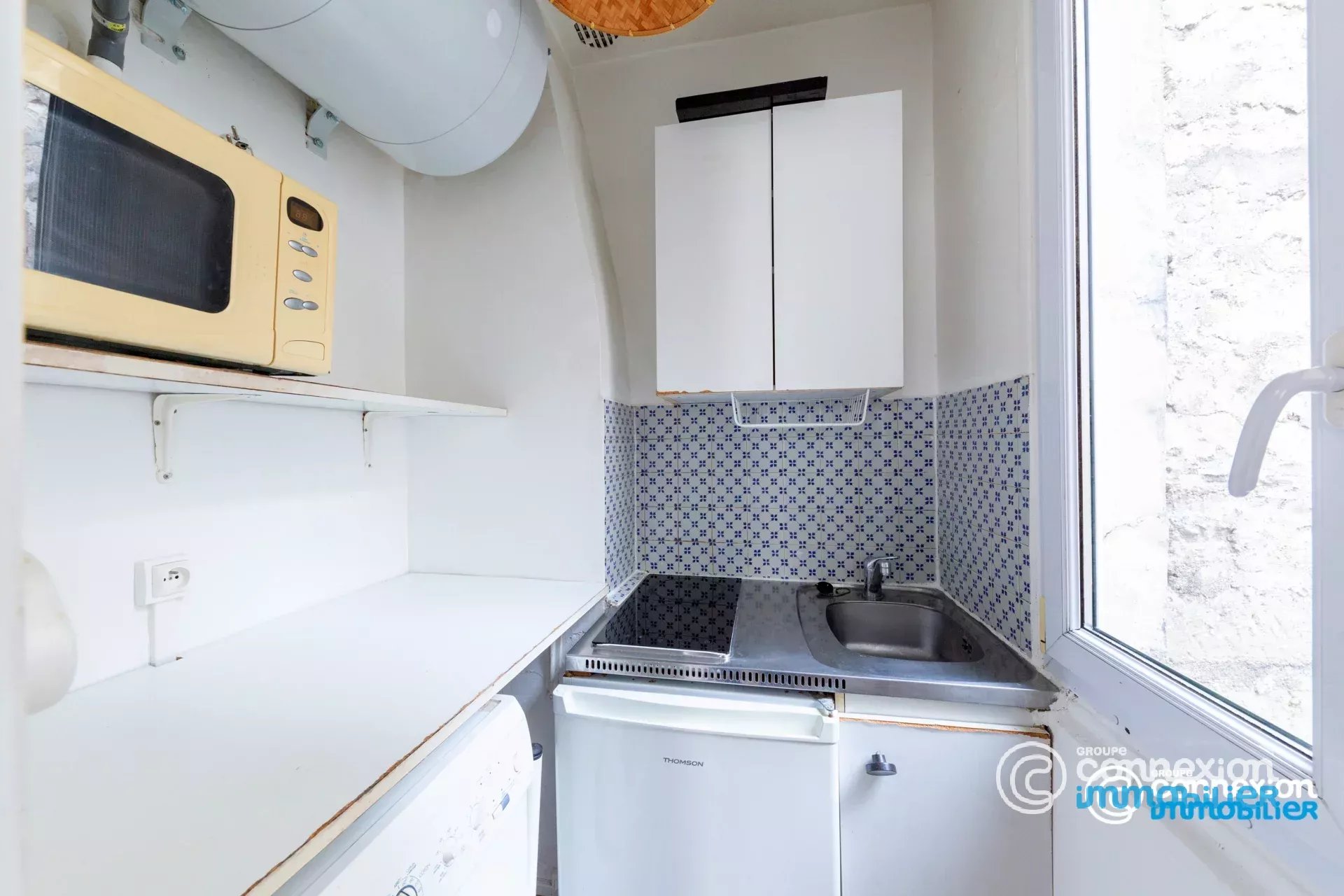 Paris 10e - Louis Blanc Au 6e et dernier étage sans ascenseur d'un immeuble ancien, studio de 16 m2 comprenant : une pièce de vie, une cuisine et une salle d'eau avec toilette. Calme et lumineux. Sans perte de place. Au pied du métro Louis blanc et des commerces idéal premier achat ou investissement Le DPE passera à la lettre F une fois les travaux de toiture réalisés (votés et réalisés d'ici l'été)