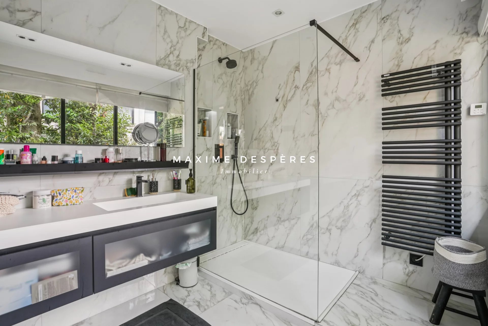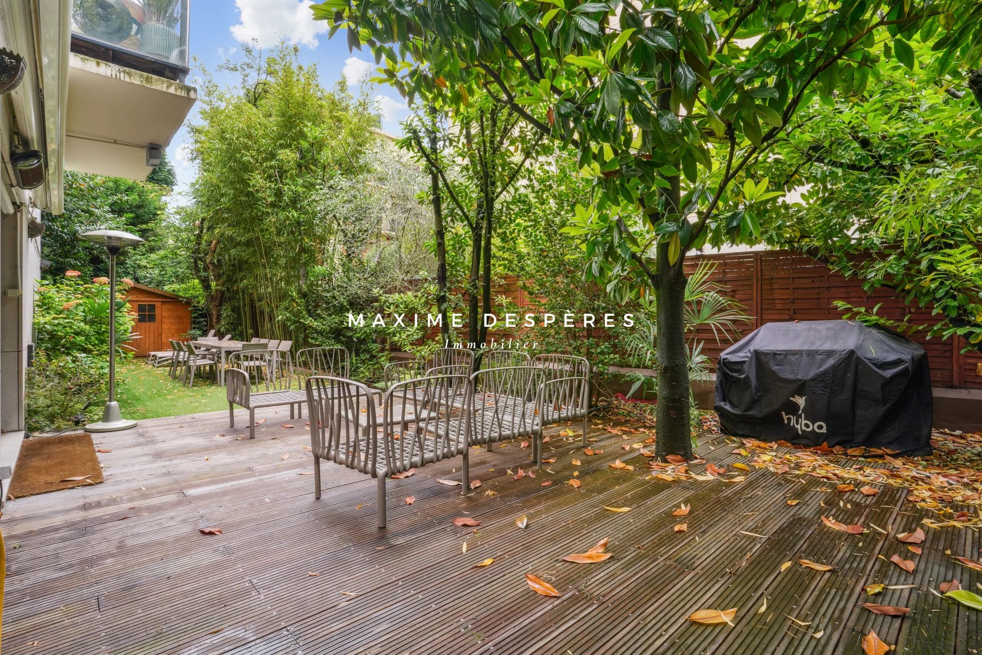 L’agence MAXIME DESPÈRES vous propose, au sein d’une copropriété de standing avec gardien et au calme absolu, cet appartement familial de 123m², bénéficiant d’un jardin paysager privatif de 260 m². L’appartement s’ouvre sur une entrée menant à une cuisine indépendante entièrement équipée, prolongée par un séjour/salle à manger de près de 50 m² avec cheminée centrale. L’espace de vie donne accès à une terrasse et au grand jardin arboré, accessible depuis chaque pièce. Un salon TV (3e chambre possible), deux chambres, dont une suite parentale avec salle de bains et WC privatifs, un WC invités et de nombreux rangements.