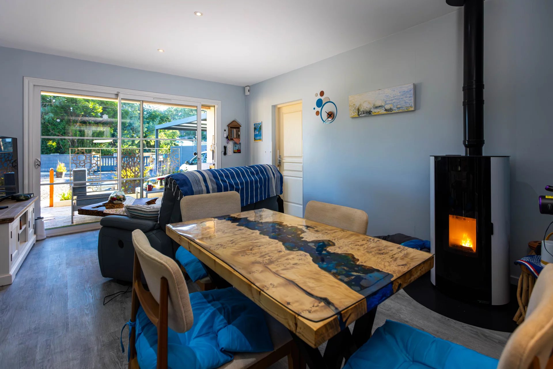 Maison 4 pièces principales avec garage, dépendance et cabanon Située au fond d’une impasse, dans un environnement calme et sans vis-à-vis, cette maison de plain-pied développe environ 80 m² habitables sur une parcelle close de 540 m². Rénovée en 2023, elle se compose d’une pièce de vie avec poêle à granulés, d’une cuisine indépendante équipée, de deux chambres, d’un bureau d’environ 9 m², d’une salle d’eau et de WC séparés. Un garage isolé de 20 m², accessible directement depuis le séjour, complète l’ensemble. En complément, une dépendance indépendante aménagée d’environ 20 m² offre une pièce de vie avec kitchenette, une chambre et une salle d’eau avec WC, permettant un accueil autonome (famille, amis ou usage saisonnier). À l’extérieur, le terrain accueille un jardin aménagé, deux terrasses, une douche extérieure, un portail électrique ainsi qu’un cabanon de rangement. Un potentiel d’évolution est également présent : le garage peut être intégré à la surface habitable et une terrasse fermée, permettant un gain possible d’environ 35 m², pour un investissement maîtrisé. Le bien est situé dans une copropriété de sol sans syndic, avec pour seule charge l’assurance commune de la toiture. 📞 Renseignements et visites sur demande.