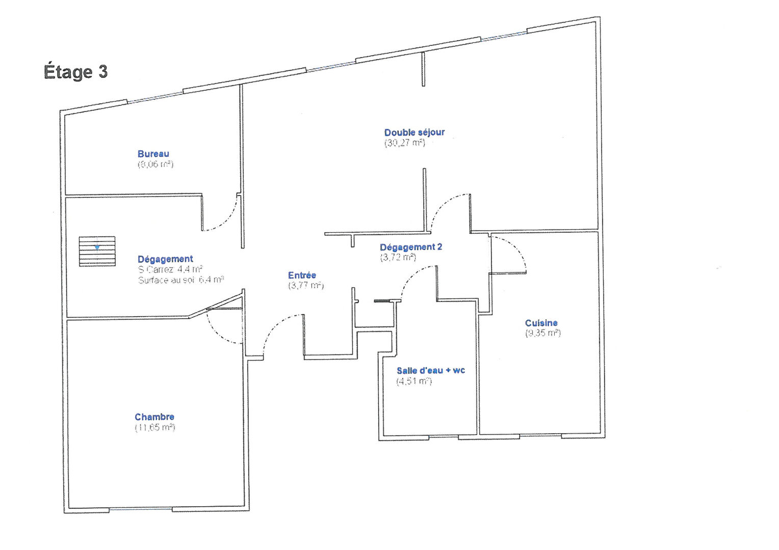 ASNIERES - BECON. DUPLEX DE 6/7 PIECES 98m² , surface au sol 146m². Situé au 3ème et DERNIER ÉTAGE. DANS UNE PETITE COPROPRIETE. Entrée, cuisine aménagée, séjour de 30m², 4 chambres, 2 bureaux, salle de bain, wc, salle d'eau-wc, chauffage individuel gaz, Faibles charges, exposé SUD, bien agencé. Cave et un box extérieur à l'arrière de la résidence. A 4MN DE LA GARE DE BECON ET DES COMMERCES. Copropriété de 5 lots - dont 5 lots habitation. (Pas de procédure en cours). Charges annuelles : 779 euros.