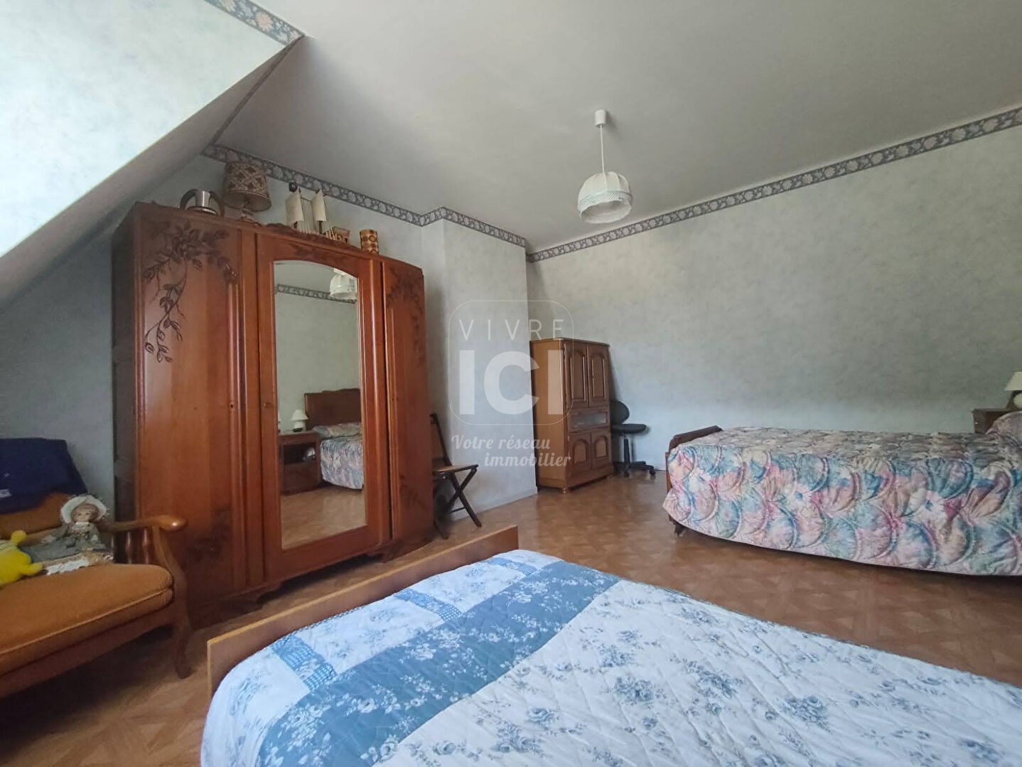 Aux portes d'Angers Située au coeur du bourg d'Andard, à deux pas des écoles, commerces et services de santé, cette belle maison d'architecte des années 80 vous séduira par ses volumes généreux, sa luminosité et son environnement paisible, à seulement 10 minutes d'Angers. Édifiée sur un sous-sol total et implantée sur un terrain clos et arboré d'environ 1300 m², cette maison offre une surface idéale pour accueillir une grande famille avec ses 5 chambres et son bureau. Dès l'entrée, vous serez charmé par la hauteur sous plafond de l'entrée cathédrale, qui donne le ton : espace et lumière sont au rendez-vous. Le salon-séjour avec cheminée insert s'ouvre sur une agréable terrasse, parfait pour les moments conviviaux. La cuisine aménagée, fonctionnelle, est prolongée par une arrière-cuisine. Le rez-de-chaussée surélevé comprend également deux chambres, une salle de bains, des rangements et des WC indépendants. A l'étage, une mezzanine distribue trois chambres supplémentaires, une deuxième salle de bains, des WC, ainsi qu'un grenier. Le sous-sol complet propose un vaste garage, une cave, un atelier et des espaces de stockage. Côté extérieur, le jardin arboré et entièrement clos constitue un véritable havre de paix pour petits et grands. Quelques travaux de rafraîchissement intérieur vous permettront de révéler tout le potentiel et de personnaliser cette maison à votre goût. Un bien rare dans un secteur recherché, alliant cadre de vie familial, calme, et proximité immédiate d'Angers. A visiter sans tarder ! Les informations sur les risques auxquels ce bien est exposé sont disponibles sur le site Géorisques : www.georisques.gouv.fr » La proposition d'aménagement est une suggestion non contractuelle réalisée par l'Intelligence Artificielle (IA) et ne correspond pas à l'état actuel du bien. (4.50 % honoraires TTC à la charge de l'acquéreur.) Isabelle BAUNE (EI) Agent Commercial - Numéro RSAC : 853965606 - ANGERS.
