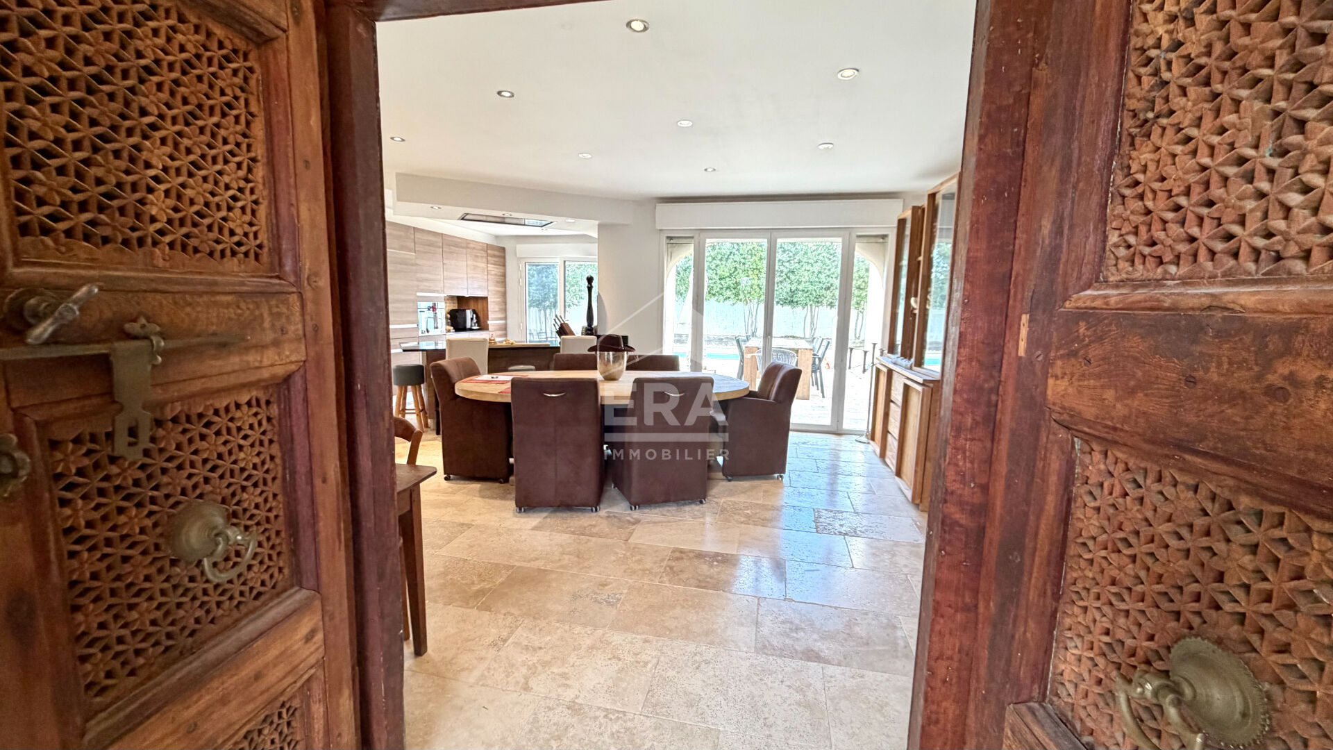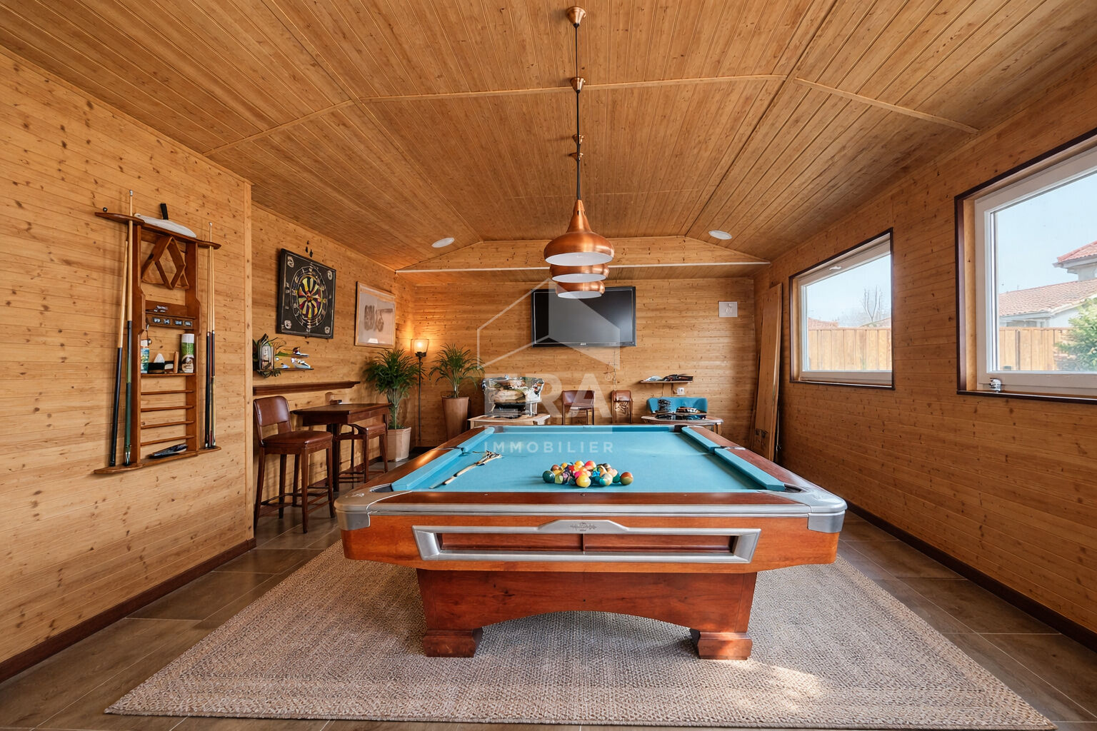 L'agence ERA SUD BASSIN vous propose en exclusivité cette agréable villa de plain-pied de173 m² habitables et implantée sur un terrain de plus de 1 000 m², située dans un quartier recherché de La Teste-de-Buch, L'entrée dessert un vaste séjour-salle à manger et cuisine ouverte d'environ 70 m², exposé sud-ouest, offrant de beaux volumes et une belle luminosité tout au long de la journée. L'espace de vie, chaleureux et convivial, est complété par un bureau, idéal pour le télétravail. La partie nuit se compose de quatre chambres, dont une suite parentale d'environ 25 m² avec salle d'eau et sauna, ainsi qu'une salle de bains indépendante. La maison dispose de trois WC, d'un cellier, et bénéficie de prestations de qualité, notamment le parquet en chêne massif dans les chambres, sol en pierre naturelle, cuisine Arthur Bonnet avec plan en granit noir poli... Les extérieurs proposent un cadre de vie agréable avec une piscine au sel de 8 x 4 mètres chauffée, parfaite pour profiter des beaux jours. (Piscine au sel Desjoyaux) Surfaces supplémentaires : - Un garage de 38 m² - Un carport d'environ 32 m² à l'avant de la maison - Une dépendance isolée de 32 m², actuellement aménagée en salle de billard, viennent compléter ce bien et offrent de multiples possibilités d'aménagement. Côté confort : climatisation réversible, chauffage au sol dans une partie de la maison, cheminée avec insert Spartherm, sauna infrarouge Sunlignten, Douche Grohe avec jets hydro-massants et cascade, paroie de douche avec verre LED intégré... Une maison aux volumes généreux, fonctionnelle et idéalement située, parfaite pour une résidence principale ou secondaire sur le Bassin d'Arcachon. Contactez votre agence immobilière ERA SUD Bassin la Teste de Buch au 05 57 63 34 98. La présente annonce immobilière a été rédigée sous la responsabilité éditoriale de Mme Caroline BODEREAU - agent commercial immatriculé au RSAC de Bordeaux sous le numéro 837 855 915 00018. (4.00 % honoraires TTC à la charge de l'acquéreur.)
