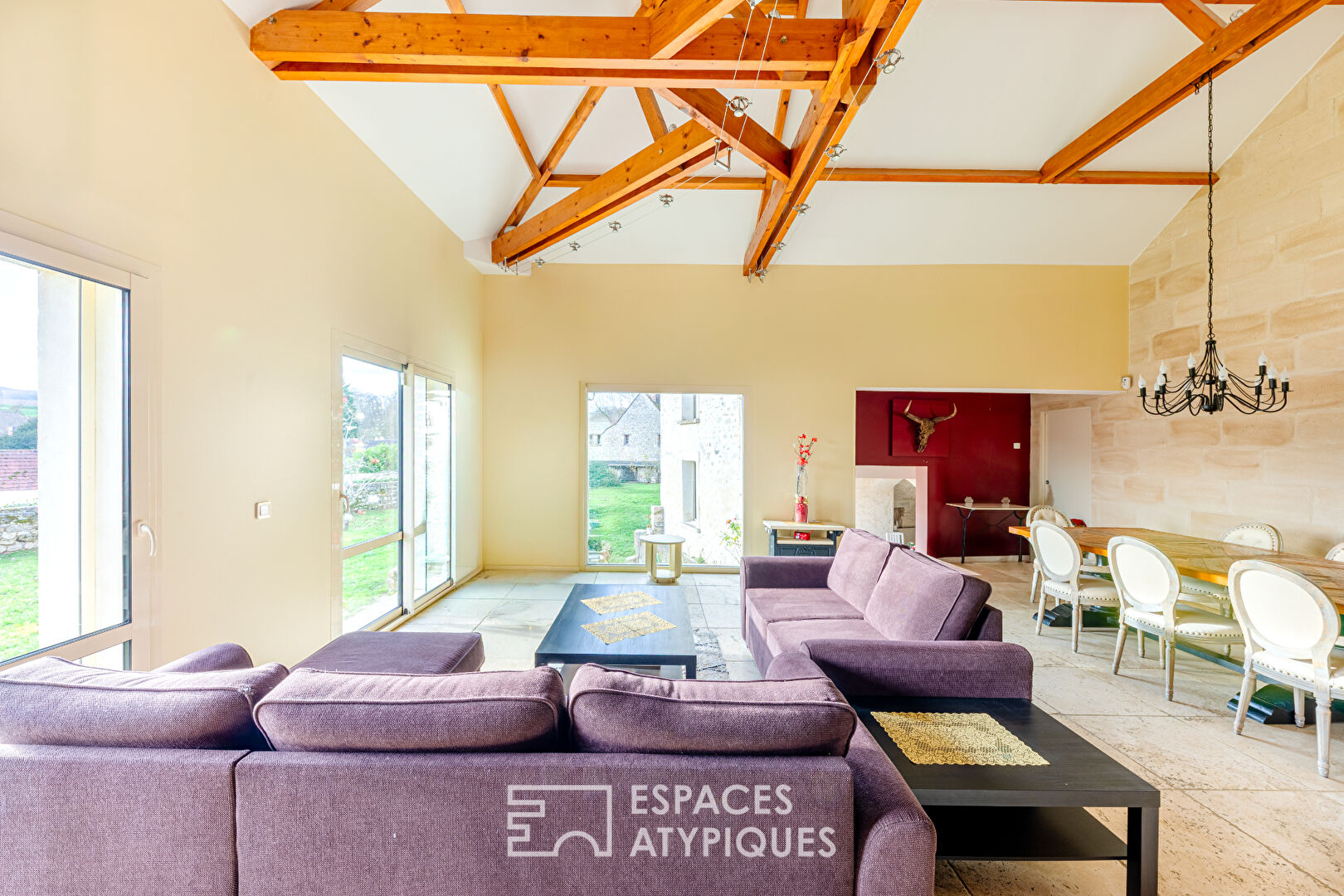 Au coeur du village de Sailly, pépite préservée du Parc Naturel Régional du Vexin, cette bâtisse de 1880 se dresse comme un trait d'union entre l'authenticité de la pierre et une vision contemporaine de l'espace. Restaurée avec une élégance rare sur plus de 180 m², mais développant plus de 250 m², cette demeure est une invitation à la sérénité, où chaque fenêtre cadre un tableau bucolique changeant au fil des saisons. Volumes et perspectives L'entrée franchie, le volume de réception saisit par sa hauteur et sa clarté. Sous une charpente majestueuse, l'espace de vie s'affranchit des cloisons pour mieux embrasser la vue totalement dégagée sur les champs. Ici, la lumière circule librement, soulignant la noblesse des matériaux et la rigueur de la rénovation. Le rez-de-chaussée dévoile également : Une cuisine dînatoire véritable lieu d'échanges et de convivialité, un salon feutré niché sous une voûte de pierre d'époque, offrant un cocon intime pour les soirées d'hiver ou les séances de lecture. Le premier niveau est consacré au repos avec trois chambres aux dimensions généreuses, baignées de calme. La salle de bains, traitée avec une touche graphique, offre un confort ultra-moderne avec sa douche et sa baignoire. Une page blanche sous les toits Le dernier étage constitue le secret le mieux gardé de la maison. Sur ce vaste plateau où les travaux de gros oeuvre ont déjà été orchestrés, tout est prêt pour accueillir vos projets les plus personnels. Une suite parentale magistrale avec dressing, une cinquième chambre, un atelier d'artiste inspirant : ce volume n'attend que votre signature pour parfaire l'harmonie de cette propriété. Un jardin face à l'infini Édifiée sur une parcelle de 760m² exposée plein Sud, la maison profite d'un extérieur entièrement plat et clos. La terrasse, suspendue face à la plaine, devient le poste d'observation privilégié du grand paysage du Vexin. Les annexes : Double garage avec mezzanine, cave et buanderie Cette demeure singulière s'adresse à ceux pour qui l'immobilier est avant tout une question d'âme et de perspectives. Un bien rare, où le silence et l'horizon se rencontrent : Idéale comme résidence principale ou secondaire. Julie - 07 77 84 74 57 RSAC : 894 542 950 Julie VALODE RAUBER (EI) Agent Commercial - Numéro RSAC : 894 542 950 - Versailles.