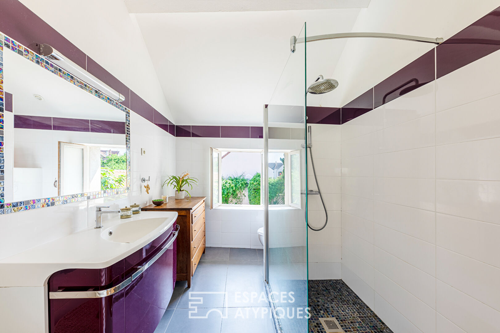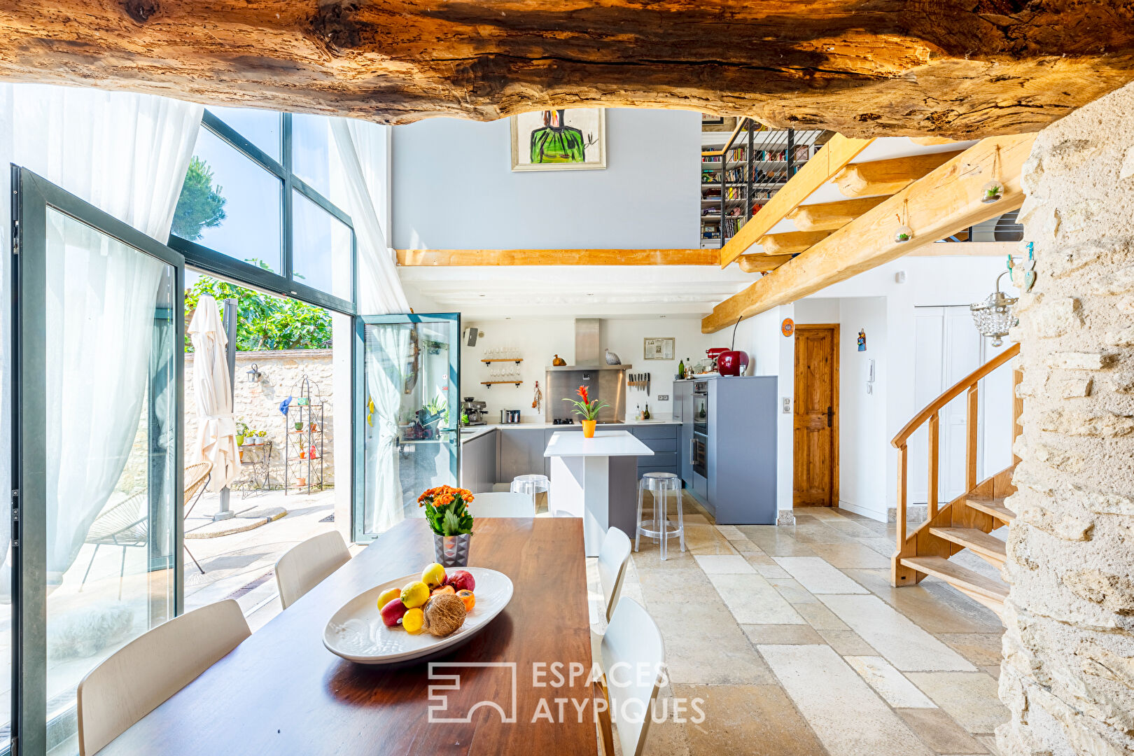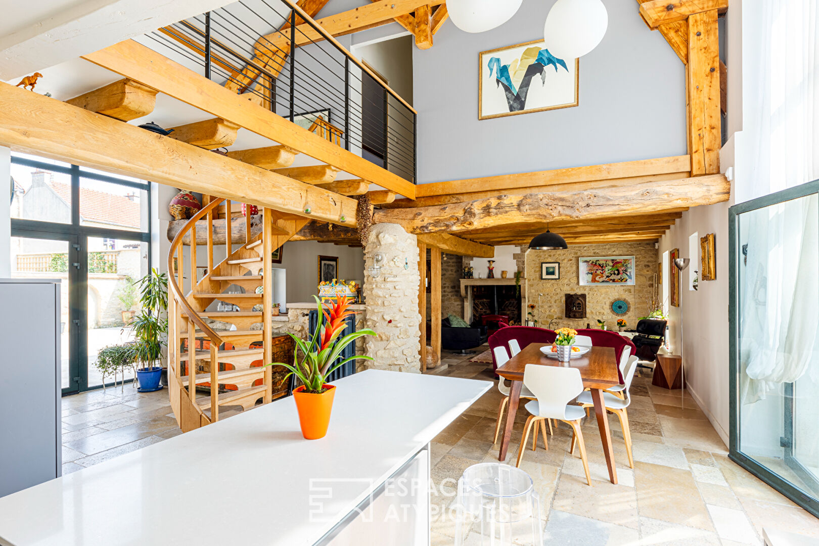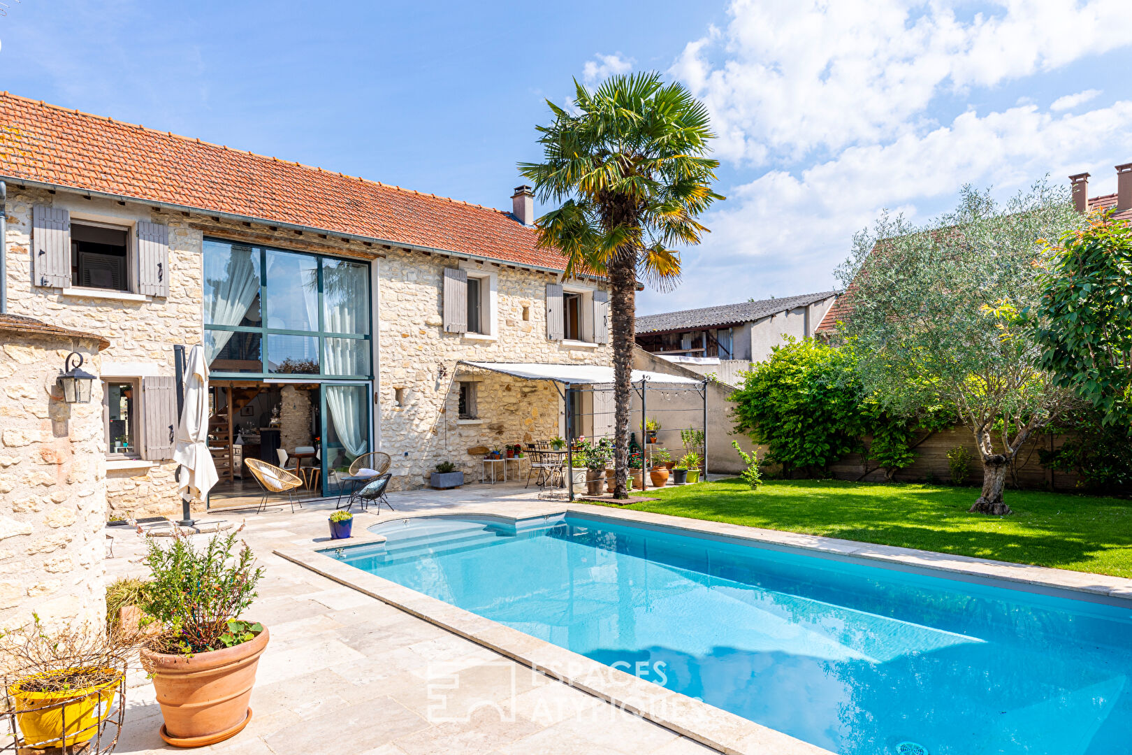 Située dans un ancien corps de ferme, cette maison historique allie parfaitement le charme d'antan et le confort moderne, dans un environnement calme tout en étant à proximité du centre-ville. Elle offre une qualité de vie exceptionnelle. Deux baies vitrées monumentales se font fassent, inondent de lumière la maison dont les hauteurs sous-plafond cathédrales ont été savamment travaillées grâce à la magnifique passerelle en acier. La vaste pièce de vie s'étend sur 80 m² et est doté d'un poêle à bois, créant ainsi une ambiance chaleureuse et conviviale. La cuisine équipée, ouverte sur le séjour, est idéale pour partager des moments en famille ou entre amis. Cette demeure comprend quatre chambres, dont une suite parentale avec salle de bains, offrant à chacun un espace privé et confortable. Le chauffage au sol, présent au rez-de-chaussée, assure une chaleur douce et uniforme, ajoutant une touche de modernité et de confort. A l'extérieur, le jardin paisible est un véritable espace de détente, agrémenté d'une piscine chauffée pour profiter de moments de relaxation en toute saison. La maison est également dotée de deux places de parking couvertes avec une borne de recharge électrique. Une très grande cour, pleine de potentiel permet d'accéder à la maison. Une dépendance côté jardin offre un espace de rangement supplémentaire. Gare de Verneuil/Vernouillet : ligne J pour Paris St Lazare (30 min) et future RER Eole (en 2025) en 15 minutes à pied. Bus Express A14 Accès A13 et A14 à quelques minutes. Cette propriété représente une rare opportunité de vivre dans une maison alliant le charme de l'ancien et le confort moderne, dans un cadre paisible et pratique. Ne manquez pas l'occasion de visiter cette demeure historique unique qui saura séduire les amoureux de la tranquillité et de l'élégance. CLASSE ENERGIE : C / CLASSE CLIMAT : C. Montant moyen estimé des dépenses annuelles d'énergie pour un usage standard, établi à partir des prix de l'énergie de l'année 2021: entre 2220 euros et 3060 euros Contact : Julie 07 77 84 74 57 Julie VALODE RAUBER (EI) Agent Commercial - Numéro RSAC : 894 542 950 - Versailles.