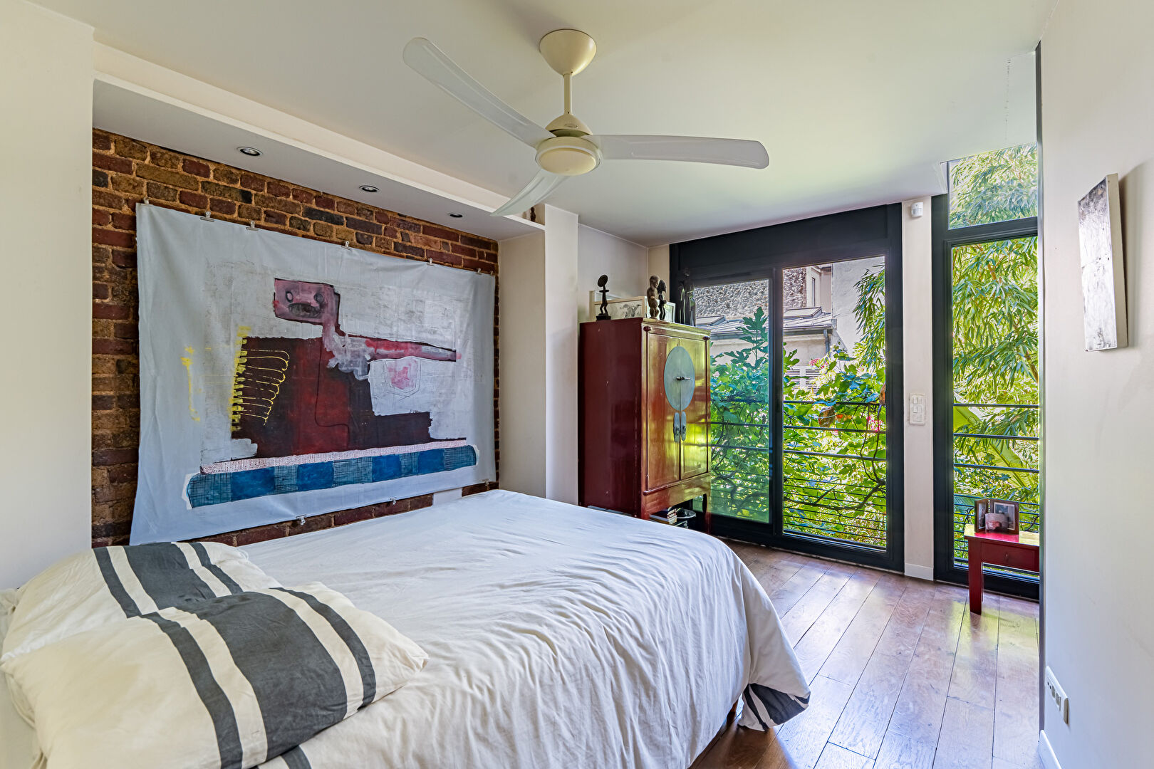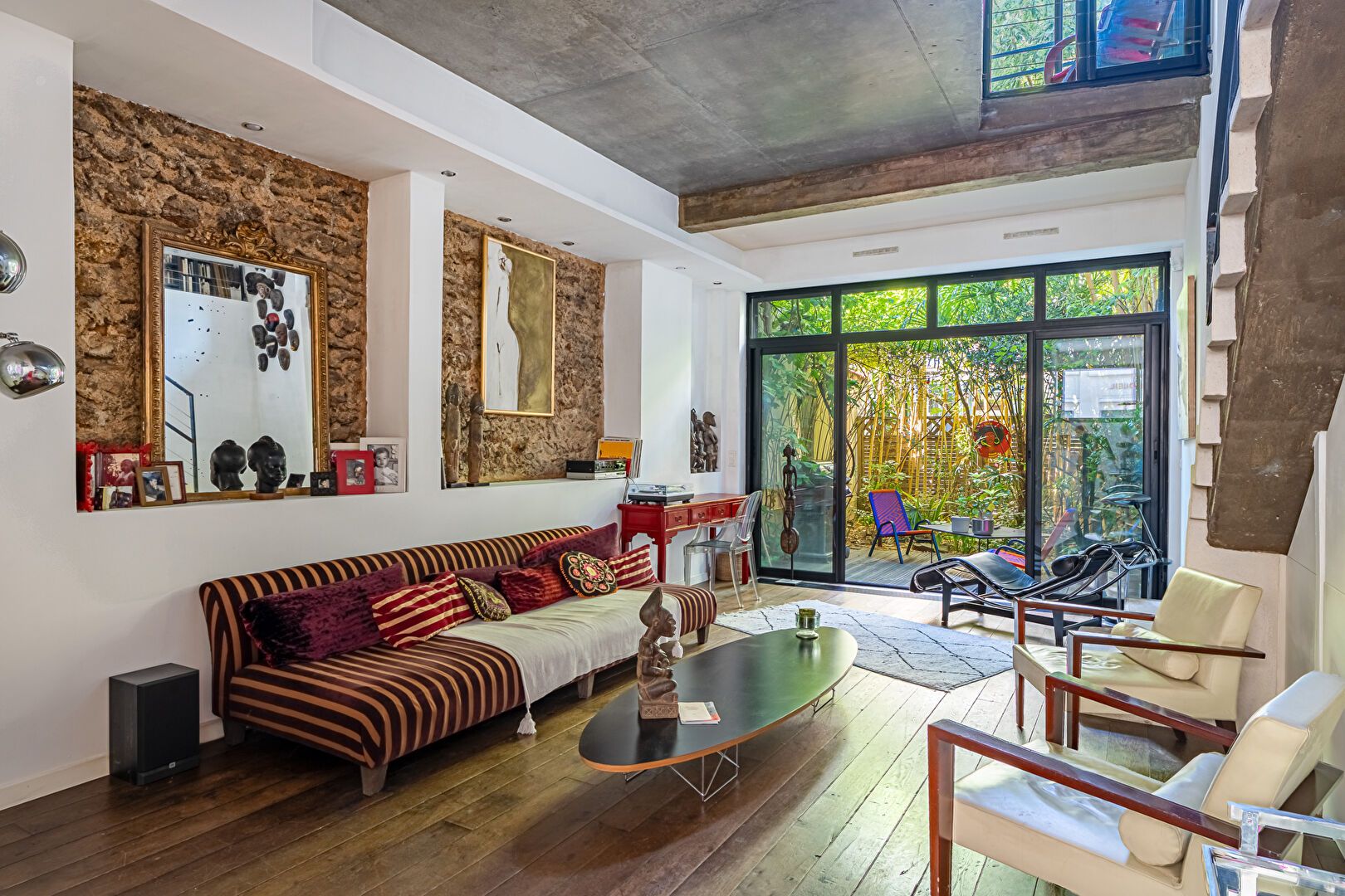 Dans le quartier Wilson-Rivay, à proximité de toutes commodités (transports, commerces, écoles), fut érigé en 2005 un beau triplex d'architecte totalisant 166 m2, prolongé par un jardinet de 25 m2 agrémenté d'une jolie végétation. Réparti sur 138 m2 au sol dont 137 m2 Carrez pour les trois niveaux, il bénéficie d'un sous-sol de 28 m2 accessible depuis la pièce à vivre au rez-de-chaussée ; soit une surface valorisable pondérée de 150 m2. Le rez-de-chaussée est dédié à la pièce principale avec cuisine semi-ouverte et prolongée par le jardinet. Le premier étage distribue une belle bibliothèque en mezzanine, des toilettes invités, une chambre avec salle de bain et toilettes, ainsi qu'une suite parentale (avec salle d'eau et dressing) surplombant la canopée du jardinet. Le deuxième étage donne accès à une grande pièce de 26 m2 aujourd'hui aménagée en salon-bureau (possibilité d'aménager une suite ou de créer deux chambres). Une salle d'eau avec toilettes complète ce niveau. Calme, beaux volumes et jolies perspectives caractérisent ce singulier lieu de vie dans un esprit maison. Ce bien fait partie d'une très petite copropriété de 3 lots d'habitation à faibles charges. Possibilité d'acquérir un parking à 300 mètres à 27 000 euros en sus du prix. Métro Louise Michel à 420 mètres. Bus 94 à 100 mètres. Bus 174 à 200 mètres. Bus 165 et Noctilien (N16 et N52) à 300 mètres. CLASSE ENERGIE : D / CLASSE CLIMAT : D. Montant moyen estimé des dépenses annuelles d'énergie pour un usage standard, établi à partir des prix de l'énergie de l'année 2021 : entre 1 480 euros et 2 070 euros. Contact : Julien - 06 98 46 19 75 / RSAC : 805 355 070. Copropriété de 5 lots - dont 3 lots habitation. (Pas de procédure en cours). Charges annuelles : 1200 euros. Julien PELRAS (EI) Agent Commercial - Numéro RSAC : 805 355 070 - Paris.