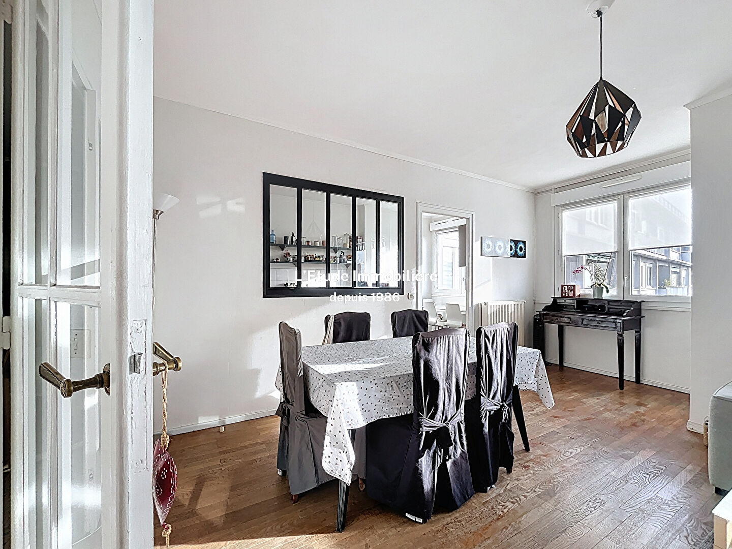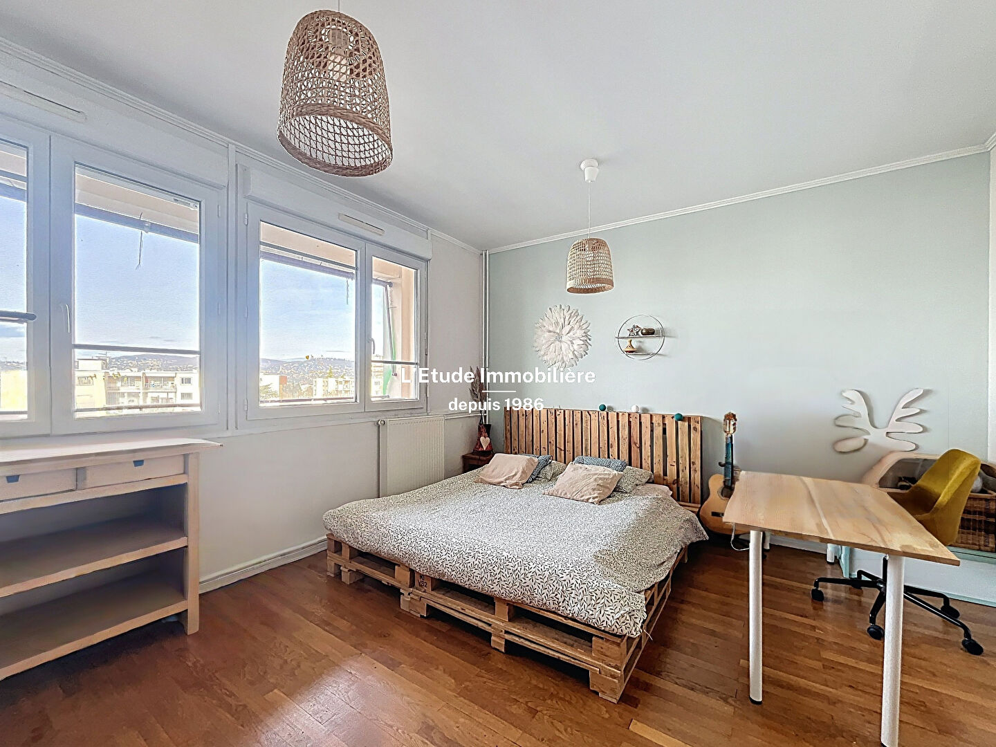 Venez découvrir à 7 minutes à pied du théâtre de la Croix Rousse, ce bel appartement familial de 137m2. Il se compose d'une belle pièce de vie avec possibilité de cuisine US, le tout ouvrant sur un balcon avec une vue imprenable sur Lyon et la chaine des Alpes, quatre vraies chambres avec vue dégagée sur les Monts d'Or et sanitaires. Au sein d'une copropriété sécurisée avec espaces verts, aire de jeux, au 7e étage, traversant, lumineux, ce bien saura séduire une famille voulant allier la praticité d'une vie Croix Roussienne et le calme d'une résidence fermée. Quelques travaux de rafraichissement sont à prévoir. Vendu avec cave, parking libre dans la résidence. L'Etude Immobilière - LES SPECIALISTES des ventes sur CALUIRE depuis 1986. Votre contact agence : Anne SILLERO : 06 59 45 74 47. Copropriété de 307 lots - dont 213 lots habitation. (Pas de procédure en cours). Charges annuelles : 4659 euros.