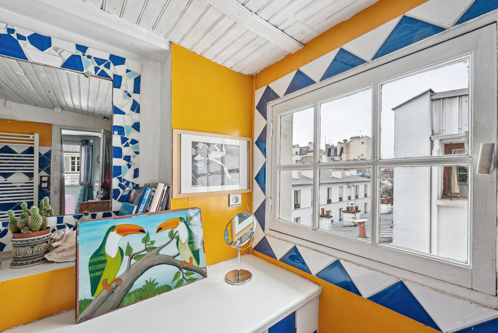Au coeur des Batignolles, dans une petite impasse privée, face à la maison où habitait Jacques Brel, nous vous proposons cet appartement de 68,88 m2 loi Carrez. Niché au 3ème et dernier étage d'un très bel immeuble, comme une maison, il se compose d'un séjour avec une cuisine semi-ouverte, une chambre avec sa salle d'eau, une seconde chambre avec sa salle de bains et des WC indépendants. Vous serez séduits par ses poutres apparentes, son charme et son calme absolu, à l'abri des regards. Une cave complète ce bien. Copropriété de 2 lots - dont 2 lots habitation. (Pas de procédure en cours). Charges annuelles : 1490 euros.