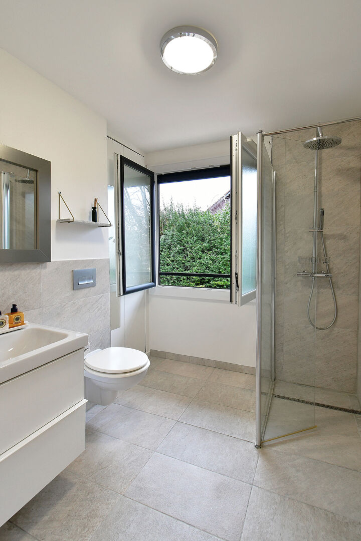Exclusivité- Jolie maison individuelle située dans un cul-de-sac au calme à distance pédestre des commodités commerciales, scolaires et de l'arrêt de bus pour aller à Genève ou Gex. Le bien comprend au RDC, un séjour spacieux et lumineux avec poêle, superbe cuisine moderne, sdd avec wc, chambre, rangement. ETAGE: palier, chambre parents avec dressing et salle de bains complète et vue dégagée sur les Alpes, deux chambres avec balcon et vue Jura, salle de douche avec wc. SOUS-SOL: palier, chambre avec salle de douche et wc, buanderie et rangement, dressing, family room, fitness, garage. EXTERIEUR: piscine (chauffée), pool-house, panneau de basket, terrasse, espace paysager, lavande, haies, portail électrique coulissant. Equipement: air conditionnée, radiateurs récents, volets électriques, piscine construite en 2021.