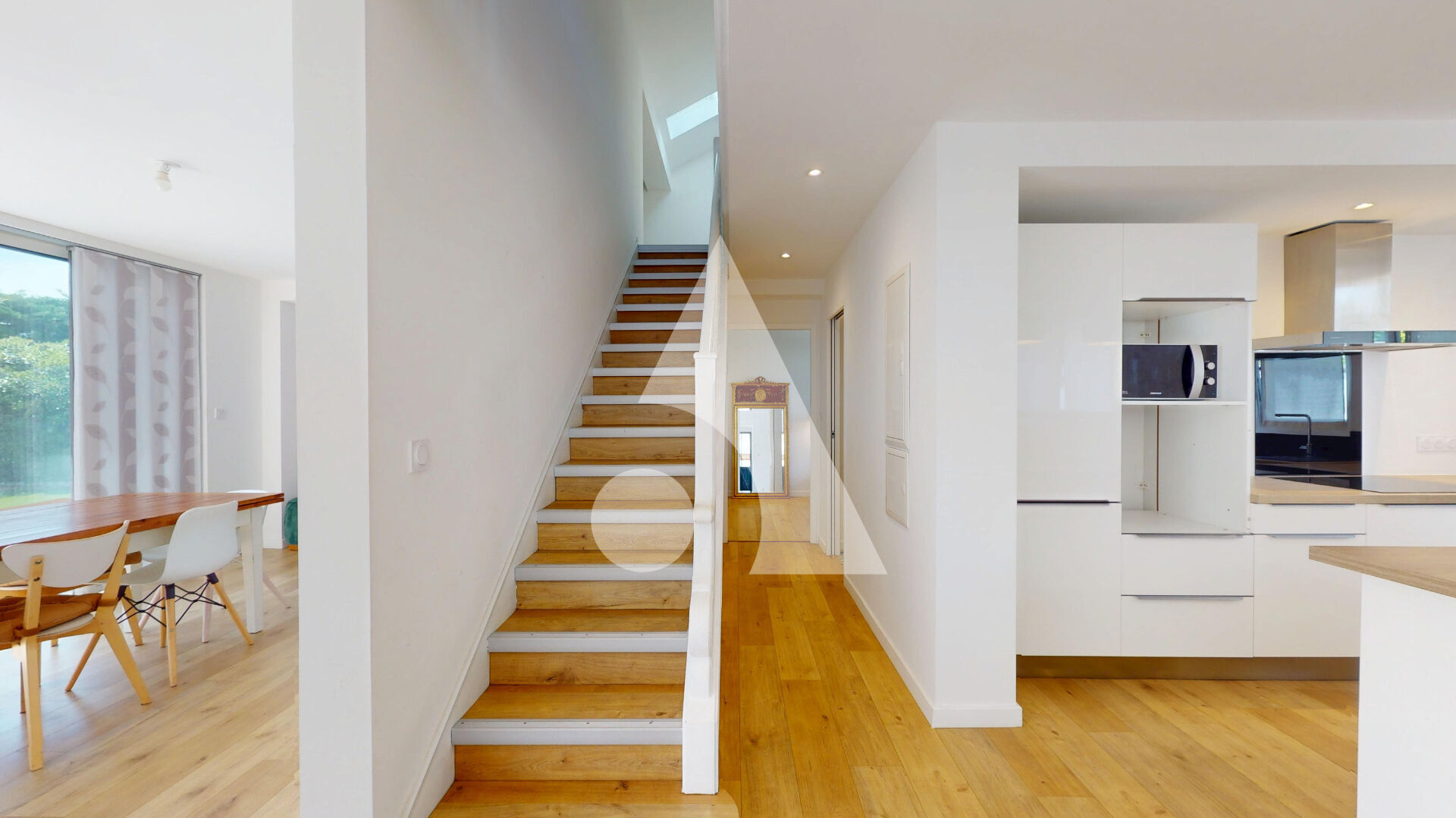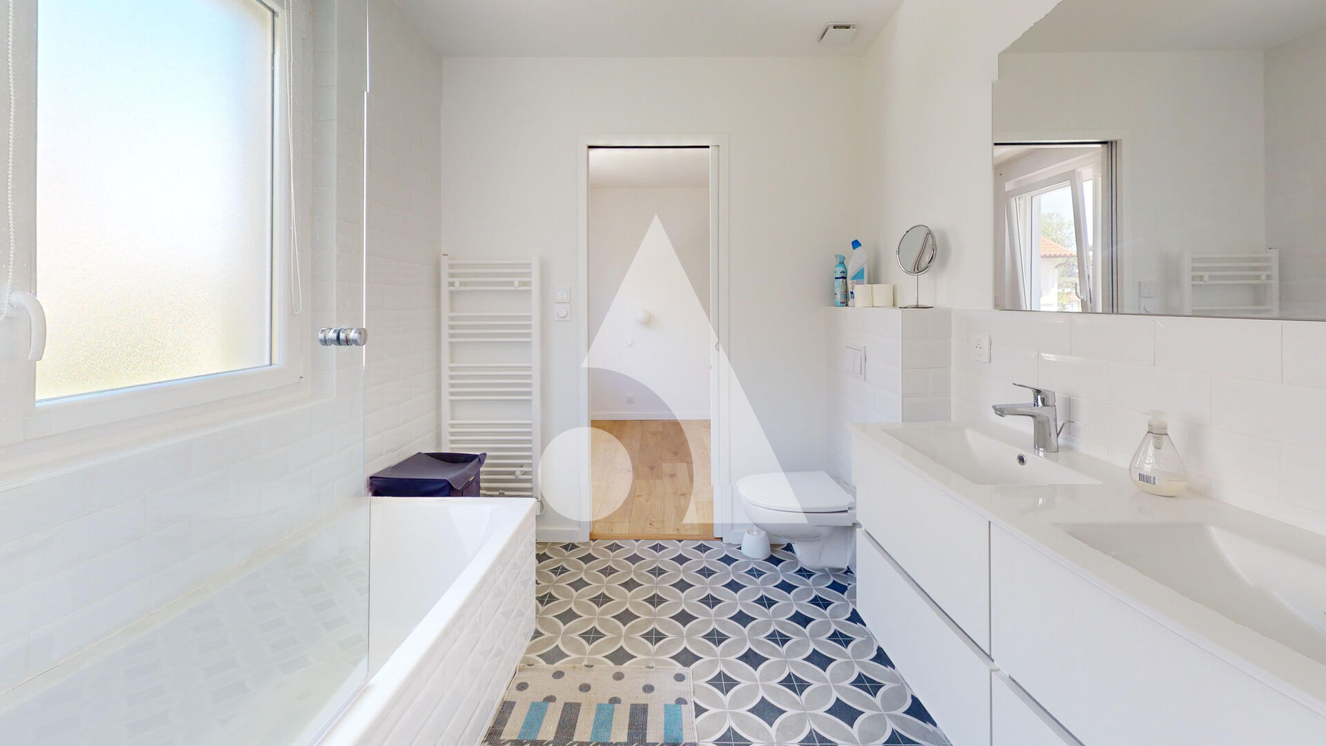 Située dans le quartier prisé d'Anglet El Hogar, au coeur d'un environnement verdoyant et préservé, cette maison familiale de 116 m² (Loi Carrez, 138 m2 au sol) offre un véritable havre de paix alliant confort, luminosité et praticité. A proximité immédiate des commerces, des écoles et des transports, elle bénéficie d'un emplacement idéal pour une vie de famille sereine au quotidien. Elle se compose : Au rez-de-chaussée, une entrée avec rangements, une cuisine indépendante, un vaste salon-séjour lumineux ouvrant sur une grande terrasse et le jardin, une chambre avec rangements et salle de bains attenante avec douche à l'italienne, ainsi qu'un WC indépendant. A l'étage, un coin bureau, deux chambres de 11 m² avec placards, une salle de bains de 5 m² avec WC, et des rangements sous toiture représentant 17 m² au sol complètent l'espace nuit. Les atouts : Jardin arboré de 200 m² exposé plein sud Garage Quartier calme et résidentiel Proximité immédiate des commodités Un bien rare dans ce secteur, idéal pour une famille en quête de qualité de vie. A découvrir sans tarder. Visite virtuelle sur demande. Copropriété de 100 lots (Pas de procédure en cours).