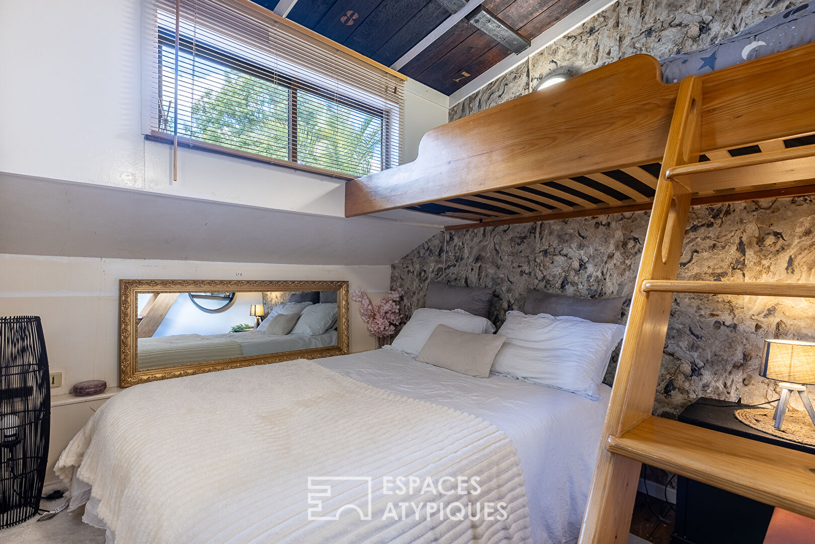 Vivre sur l'eau prend tout son sens à bord de cette superbe péniche Tjalk de près de 100 m² habitables, entièrement aménagée et meublée. Véritable maison flottante, elle associe confort, esthétisme et liberté de navigation. Dès l'embarquement, le ton est donné : la timonerie, transformée en un agréable petit salon, illustre parfaitement l'esprit chaleureux de ce lieu de vie. Quelques marches conduisent au niveau inférieur où se trouvent, d'un côté, un espace sanitaire et l'accès à la salle des machines, et de l'autre, la vaste pièce centrale. Cet espace de réception, organisé autour d'une cuisine ouverte et d'un poêle à bois, bénéficie de volumes généreux qui invitent à partager des moments conviviaux en famille ou entre amis. Un couloir mène ensuite vers deux chambres communicantes par une salle d'eau avec WC, puis vers une seconde salle de bain équipée d'une douche, d'une baignoire et d'un WC. Une troisième chambre complète la distribution et confère à la péniche une capacité d'accueil rare et confortable. Conçue initialement par un architecte, la péniche offre une circulation fluide entre ses différents espaces. La décoration soignée et le mobilier pensé sur mesure renforcent l'atmosphère accueillante et fonctionnelle. A l'extérieur, une terrasse de plus de 40 m² prolonge l'espace de vie, idéale pour profiter des beaux jours et de la proximité de l'eau. Actuellement amarrée mais pleinement navigante, cette péniche habitable constitue un lieu singulier qui peut s'envisager aussi bien comme résidence principale que comme pied-à-terre atypique. Elle offre la liberté d'un mode de vie itinérant, au fil des canaux et des ports, tout en garantissant le confort d'une véritable maison. Bien non soumis au DPE. Les informations sur les risques auxquels ce bien est exposé sont disponibles sur le site Géorisques : www.georisques.gouv.fr Thibaut Boillot (RSAC: 884574492) : 0663412480 Thibaut BOILLOT (EI) Agent Commercial - Numéro RSAC : 884574492 - Belfort.