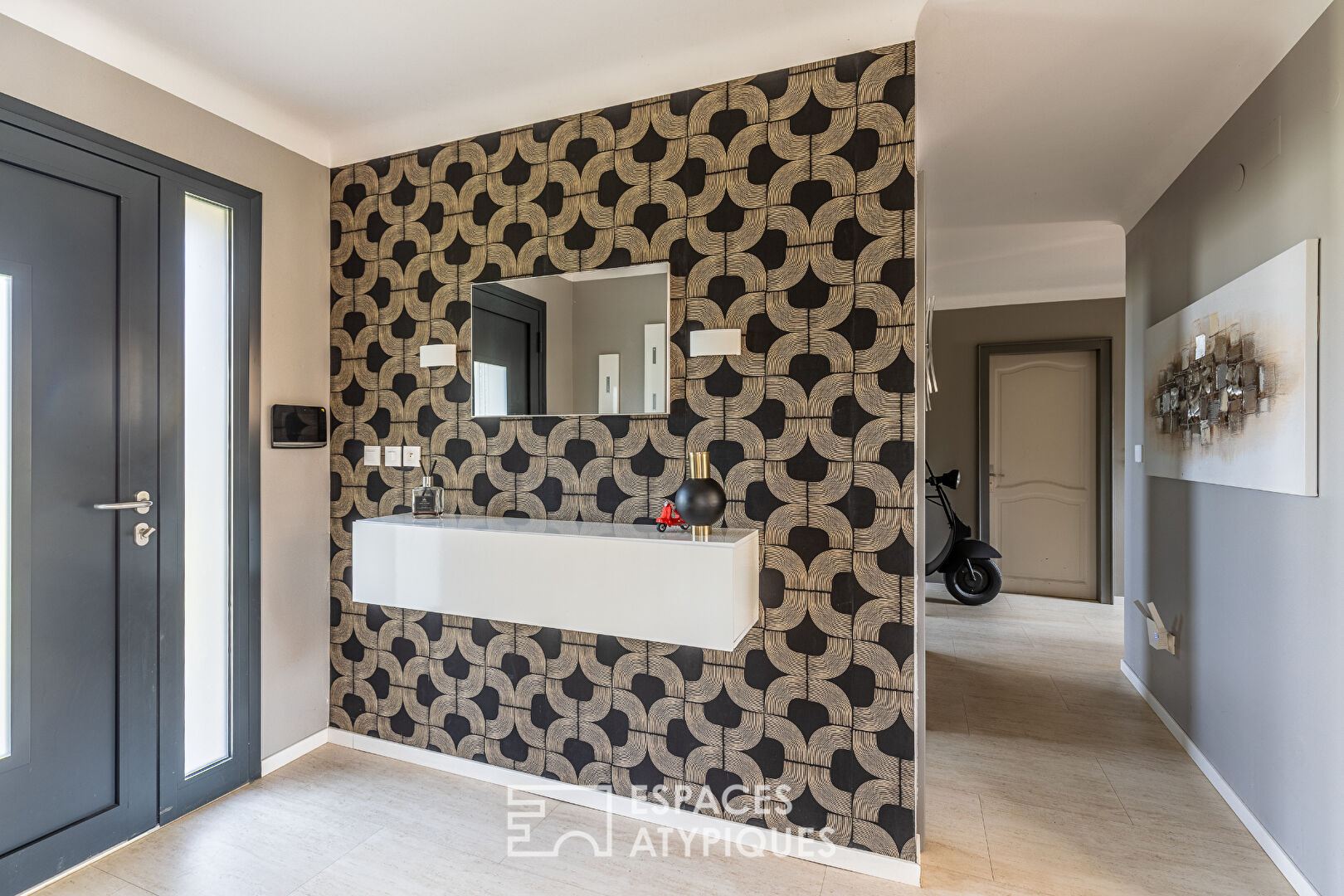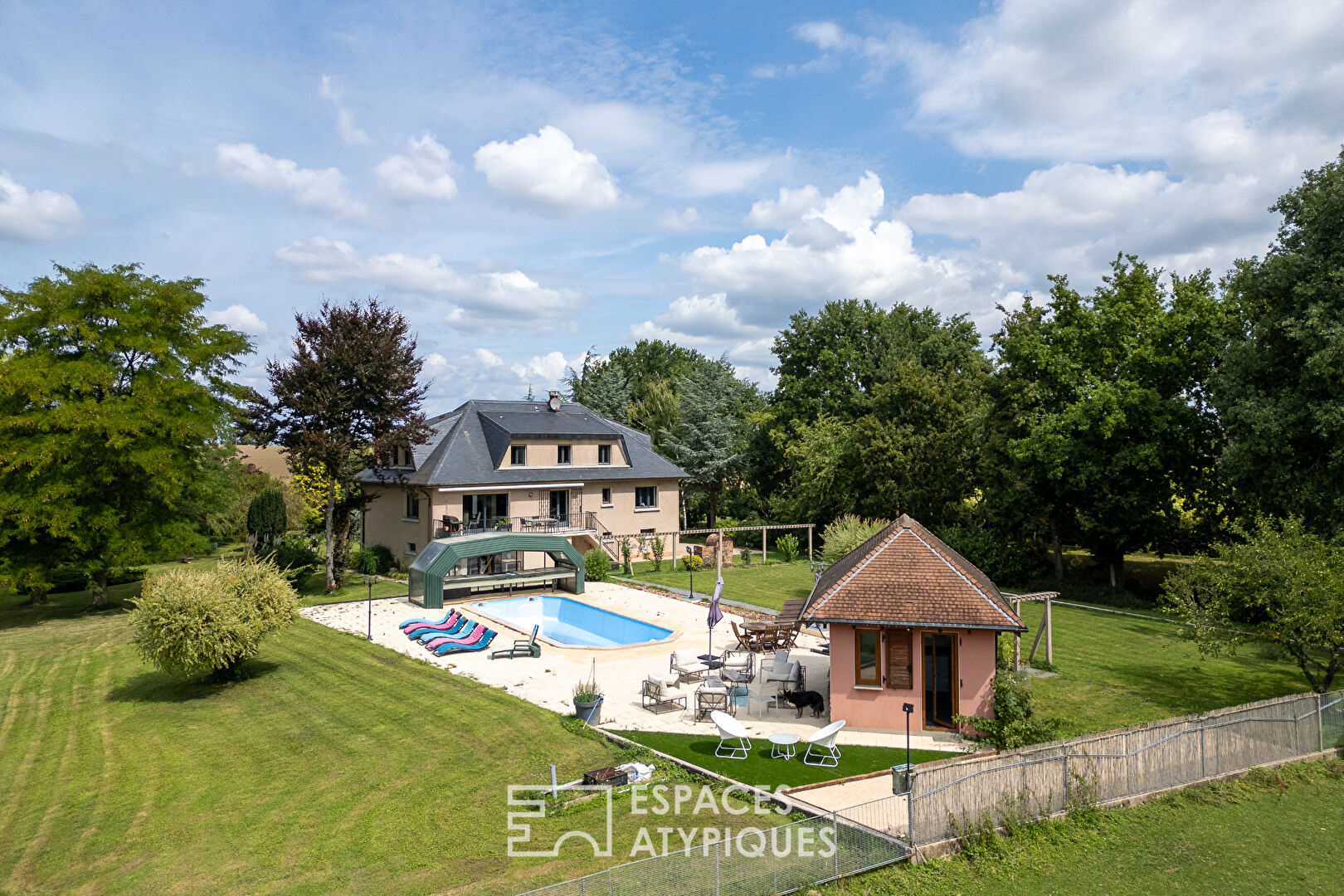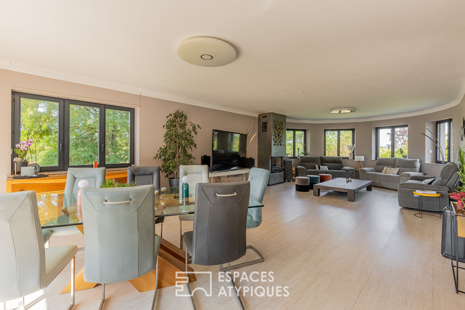 A proximité immédiate de Metz, cette vaste propriété se compose d'une maison de 279 m² complétée par un bâtiment annexe d'environ 300 m². Implantée sur un terrain de plus de 2,6 hectares, elle se distingue par sa rénovation complète réalisée en 2019, la présence d'une piscine couverte découvrable, d'un ascenseur intérieur et d'espaces extérieurs parfaitement pensés pour conjuguer confort et sérénité. Cet ensemble immobilier rare séduit par son environnement préservé et sa localisation stratégique. La maison offre des volumes généreux et une organisation fonctionnelle. Le premier étage accueille un vaste salon-salle à manger baigné de lumière, prolongé par une cuisine américaine aménagée et équipée. L'ensemble s'ouvre sur une terrasse offrant une vue sur le jardin et la piscine. Ce niveau comprend également deux chambres et une salle de bain. Le deuxième étage propose deux chambres supplémentaires, une salle d'eau, ainsi qu'une suite parentale dotée d'un dressing et d'une salle de bain privative. Le sous-sol abrite un garage pour un véhicule, une buanderie, une chaufferie, un vestiaire, une salle de billard avec bar et une pièce attenante. Un ascenseur dessert tous les niveaux, depuis le sous-sol jusqu'au dernier étage, offrant un confort rare dans une maison. Les extérieurs constituent un atout essentiel. La piscine couverte découvrable et son pool-house créent un agréable espace de détente. Le terrain en partie arboré et paysager intègre une prairie d'environ 1,8 hectare, actuellement dédiée à deux chevaux, ainsi qu'un bâtiment indépendant d'environ 300 m², idéal pour le stockage de matériel ou l'accueil d'une activité équestre. L'absence de vis-à-vis, la quiétude du site et la proximité immédiate de Metz et des axes autoroutiers, renforcent l'attrait de cette maison familiale. Par ses volumes, ses équipements et son implantation privilégiée, cette propriété unique conjugue la tranquillité d'un domaine à la campagne et l'accessibilité directe aux commodités urbaines, et constitue une opportunité rare sur le marché immobilier local. Commerces et services à 5 min Ecole élémentaire à Vany à 3 min Ecole maternelle à Failly à 6 min Collèges, lycées à Metz Transports en commun : ligne P108 du réseau Le Met' ? arrêt de bus à 400 mètres Accès autoroute (A4 vers A 31 ? échangeur Hauconcourt) à 5 min CLASSE ENERGIE : C / CLASSE CLIMAT : B Montant moyen estimé des dépenses annuelles d'énergie pour un usage standard, établi à partir des prix moyens des énergies indexés sur les années 2021, 2022, 2023 (abonnements compris) : entre 3720 et 5080 euros Contact : Valérie 06.69.99.70.12 Valerie CHARLIER (EI) Agent Commercial - Numéro RSAC : 828 820 043 - Metz.