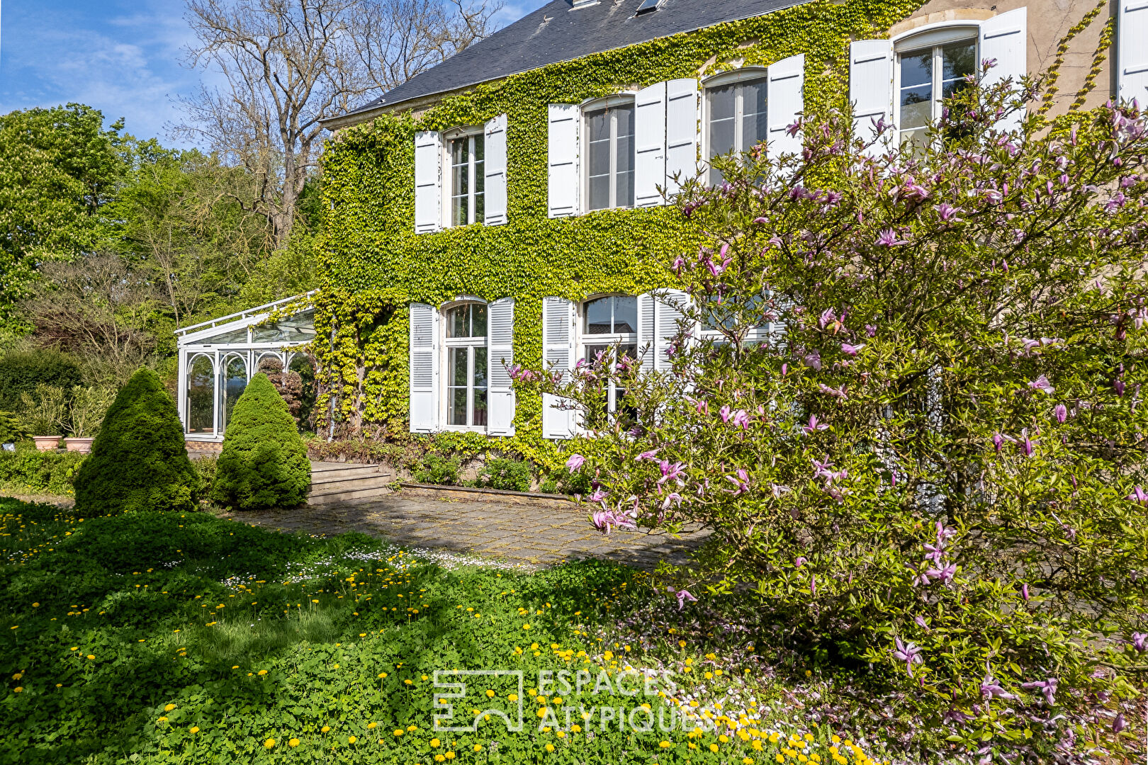 Située à seulement 10 minutes de la gare SNCF de Metz et à proximité directe des axes autoroutiers A31 et A4, cette propriété de caractère du XVIIIe siècle développe près de 500 m² habitables au coeur d'un parc paysager de plus de 3,5 hectares. Entourée de nature et ponctuée d'un étang, d'une piscine et de nombreuses dépendances, elle offre un cadre de vie privilégié et préservé, tout en restant proche de l'aéroport de Metz-Nancy, accessible en 15 minutes. Édifiée sur deux niveaux, cette bâtisse ancienne dévoile au rez-de-chaussée une cuisine fonctionnelle, une salle à manger authentique, une pièce supplémentaire pouvant accueillir un bureau, une salle d'eau ainsi que trois pièces de réception, dont un salon bibliothèque et un espace chaleureux autour d'une cheminée. Ce dernier ouvre sur une véranda lumineuse pouvant faire office de salon d'hiver. A l'étage, sept chambres réparties sur des volumes généreux permettent d'accueillir famille et invités. Deux salles d'eau viennent compléter cet espace nuit. Les combles, actuellement non aménagés, offrent un potentiel supplémentaire pour développer de nouvelles pièces selon les envies et projets. A l'extérieur, le parc arboré accueille un étang naturel, une piscine, une serre ancienne, un potager et de nombreuses dépendances, dont deux appartements : l'un de 65 m² à rénover, destiné au gardien, et un second de 55 m² avec jardin, récemment rénové, idéal pour un projet locatif ou pour accueillir des visiteurs. Les bâtiments annexes ajoutent à l'ensemble une véritable polyvalence d'usage, pour les amateurs de nature, de patrimoine et de grands espaces. Un garage ainsi que de nombreuses places de stationnement complètent l'ensemble. La propriété bénéficie d'une localisation privilégiée, offrant un cadre calme et verdoyant, tout en restant à proximité immédiate de Metz et de ses commodités. Les commerces, écoles et services sont rapidement accessibles depuis Pouilly, et l'accès rapide aux autoroutes et aux transports facilite les déplacements régionaux et transfrontaliers. Véritable demeure de caractère, cette propriété séduit par son cachet ancien, ses nombreuses possibilités d'aménagement et ses espaces extérieurs soignés. Un lieu unique et rare, idéal pour un projet familial, une résidence secondaire ou une activité de réception, au coeur d'un environnement naturel préservé. Commerces à Marly à 10 minutes en voiture Ecole maternelle, élémentaire, périscolaire, micro-crèche à Fleury à 3 min en voiture Collège Paul Verlaine à Metz à 5 minutes en voiture Lycées à Metz et Montigny-Les-Metz à 15-20 min Transports : Ligne Le Met' P113-L5, KEOLIS 3 frontières 64 ; Navettes Lorraine Airport ; Navettes Lorraine TGV CLASSE ENERGIE : D / CLASSE CLIMAT : D Montant moyen estimé des dépenses annuelles d'énergie pour un usage standard, établi à partir des prix de l'énergie de l'année 2021 : entre 7060 et 9620 euros Contact : Valérie 06 69 99 70 12 Valerie CHARLIER (EI) Agent Commercial - Numéro RSAC : 828 820 043 - Metz.