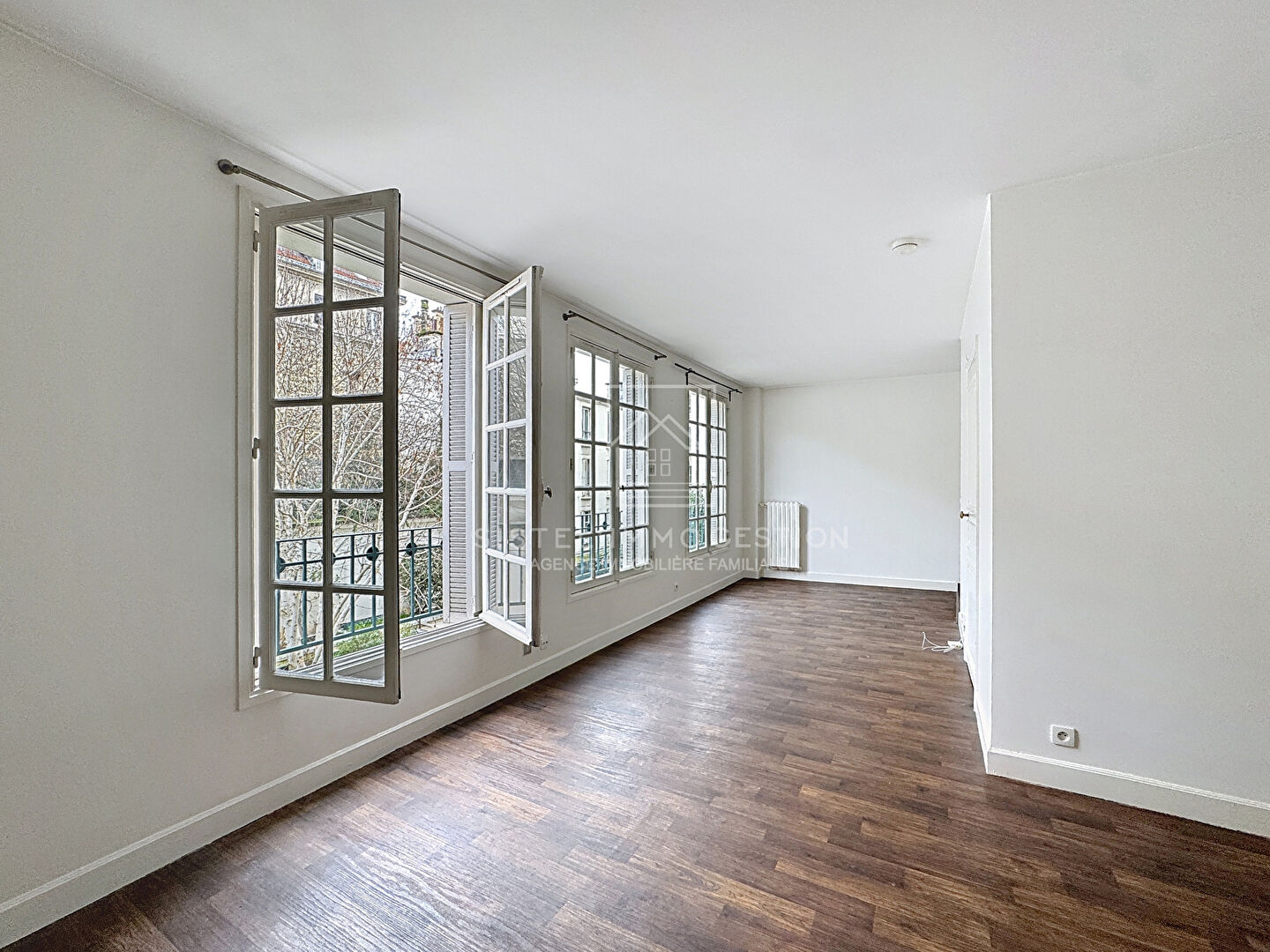 Sistel'immo (SIG) - Agence Immobilière familiale - propose un charmant appartement dans une copropriété des années 1980 au 1er étage sur cour un appartement de type studio/2 pièces se composant d'une entrée avec rangements, d'un WC indépendant, d'une pièce principale avec trois fenêtres et d'un coin kitchenette fonctionnel, ainsi que d'une salle de bain. La configuration du logement permet d'aménager un espace nuit confortable et de profiter d'un cadre calme et intimiste au coeur de