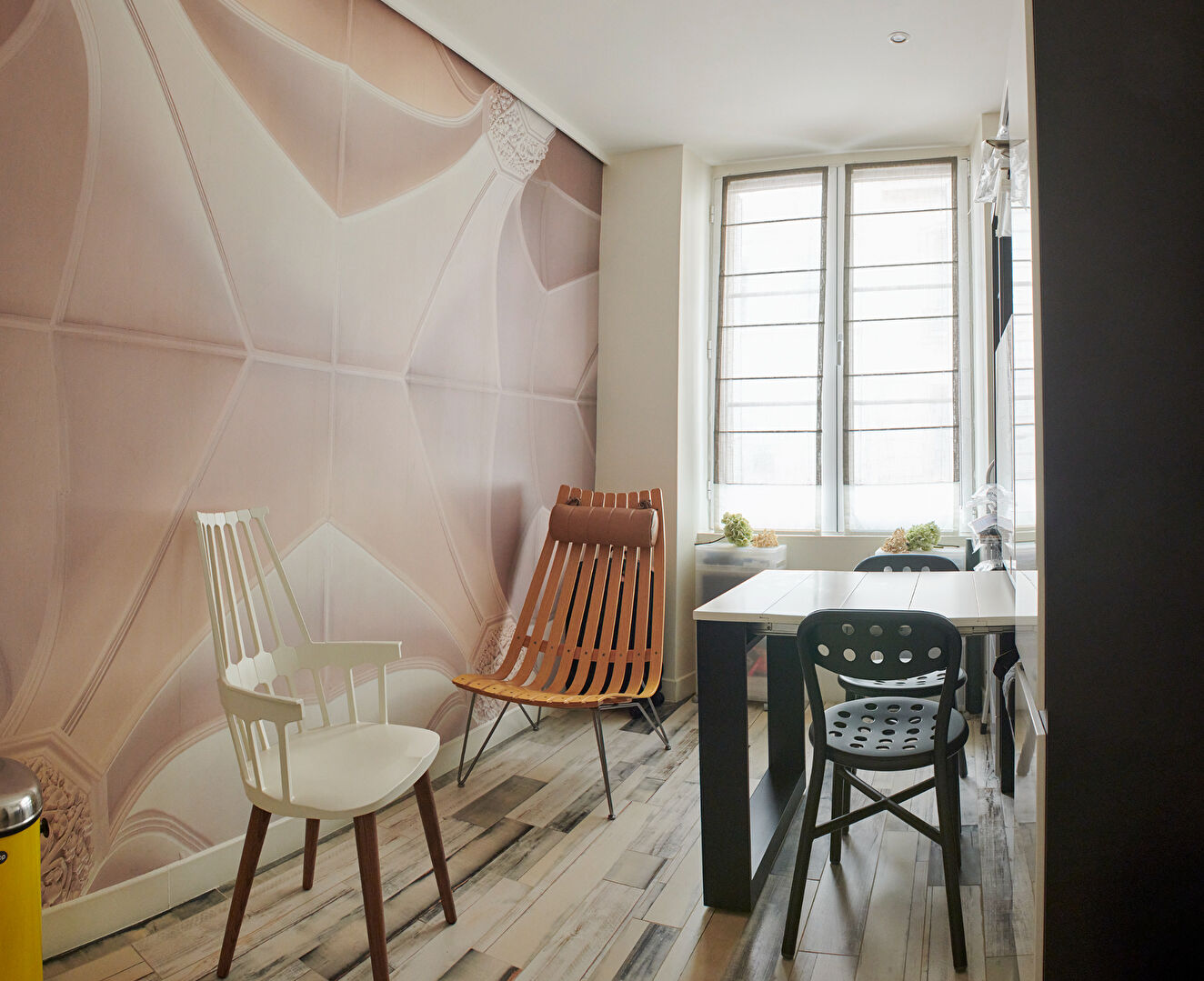 Niché au coeur du Paris mythique de la Rive Gauche, a deux pas des bords de seine et de la cathédrale Notre-Dame de Paris, dans le quartier emblématique qui sert de décor à "Emily in Paris", ce studio d'une surface de 28,50 m² au sol (25,18m² Carrez) a été astucieusement aménagé en duplex. Situé au 5ème et dernier étage d'un immeuble ancien de standing, accessible par ascenseur jusqu'au 4ème étage, il offre un cadre de vie rare. L'espace intérieur a été entièrement repensé