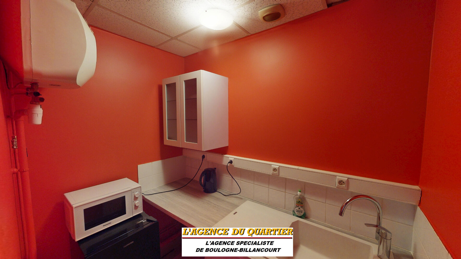 L'Agence du Quartier vous propose de prévisualiser ces bureaux en VRAIE VISITE 3D ! Rue Henri Martin, à proximité immédiate de la Porte de Saint-Cloud (métro ligne 9) et de toutes commodités, bureaux/espaces de travail/locaux de plan pied d'une surface de 109 m² comprenant deux entrées distinctes, grande pièce principale, 4/5 bureaux distincts, une cuisine, une salle d'eau avec WC aux normes PMR et de nombreux placards. Idéal pour co-working ou professions libérales. Chauffage et eau chaude électriques. Fenêtres double vitrage et volets électriques roulants. Disponibles immédiatement. DPE vierge. Honoraires d'agence : 30 % du loyer annuel HT HC Dépôt de garantie : 3 mois HT HC minimum Provisions sur charges : 100 euros environ. Bail précaire possible (max 23 mois). Révision annuelle du loyer. L'Agence du Quartier, 98 Rue Gallieni 92100 Boulogne-Billancourt