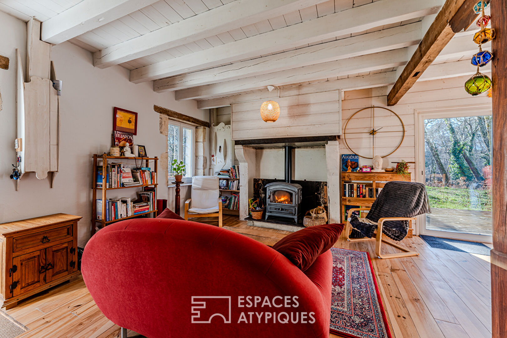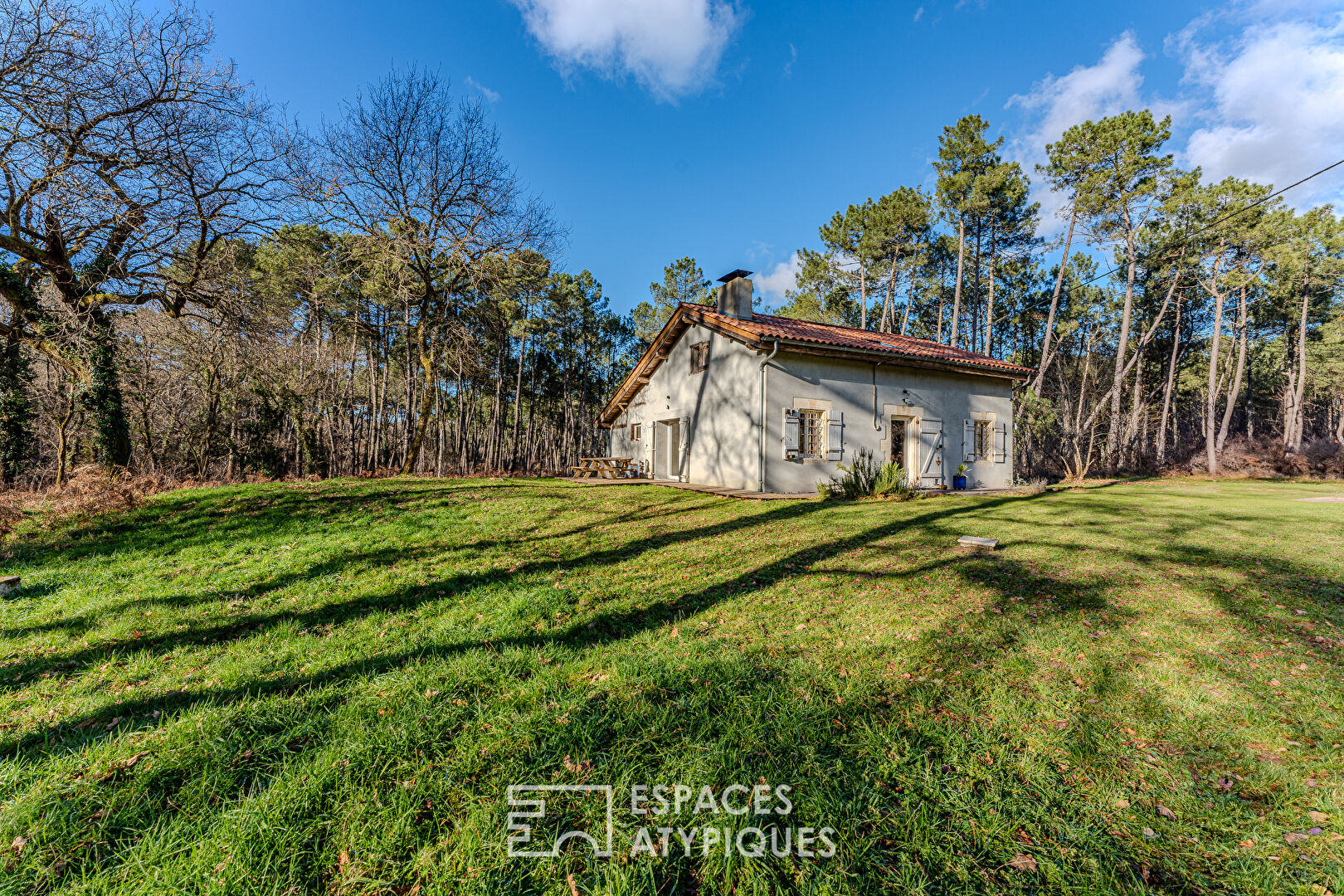 Au coeur des Landes, entre océan Atlantique et immensités forestières, cette ancienne maison landaise de forestier des années 1920, restaurée avec soin, se dévoile dans un environnement naturel d'une rare quiétude. Développant 115 m² habitables sur deux niveaux, elle s'inscrit sur un terrain de plus de 8 000 m², isolé à plus d'1,5 km de toute route, offrant une immersion totale dans la forêt landaise. Un bien immobilier atypique à Escource, empreint d'authenticité et de charme. L'intérieur propose un espace de vie convivial, rythmé par des poutres apparentes, des matériaux traditionnels et une atmosphère chaleureuse. Le salon, organisé autour d'un poêle à bois, invite à la détente et aux moments partagés. La cuisine ouverte et fonctionnelle prolonge naturellement la pièce de réception. La maison dispose de trois chambres réparties sur les deux niveaux, ainsi que de deux salles de bain, offrant un agencement fluide et équilibré, adapté à une résidence principale ou secondaire. Les volumes, sans ostentation, laissent place à un potentiel d'aménagement intéressant. A l'extérieur, le vaste terrain boisé compose un cadre de vie préservé, propice au calme et à la contemplation. Cet environnement exceptionnel ouvre également la voie à un projet, rare et unique, de développement touristique, avec la possibilité d'implanter des logements légers d'habitation touristique ponctuelle, en harmonie avec la nature environnante. Les premières commodités restent accessibles depuis la commune d'Escource, tout en conservant un sentiment d'isolement privilégié. Bien rare sur le marché de l'immobilier atypique de prestige dans les Landes, cette maison séduit par son cachet authentique et son cadre hors du temps. CLASSE ÉNERGIE : B/ CLASSE CLIMAT : A Montant moyen estimé des dépenses annuelles d'énergie pour un usage standard, établi à partir des prix de l'énergie de l'année 2021, 2022,2023 : entre 960 euros et 1390 euros. Contact : Arnaud Schwizguebel, tél : 06.84.25.71.00 RSAC : 941 363 046 Mont-de-Marsan ARNAUD SCHWIZGUEBEL (EI) Agent Commercial - Numéro RSAC : 941363046 - Mont-de-Marsan.