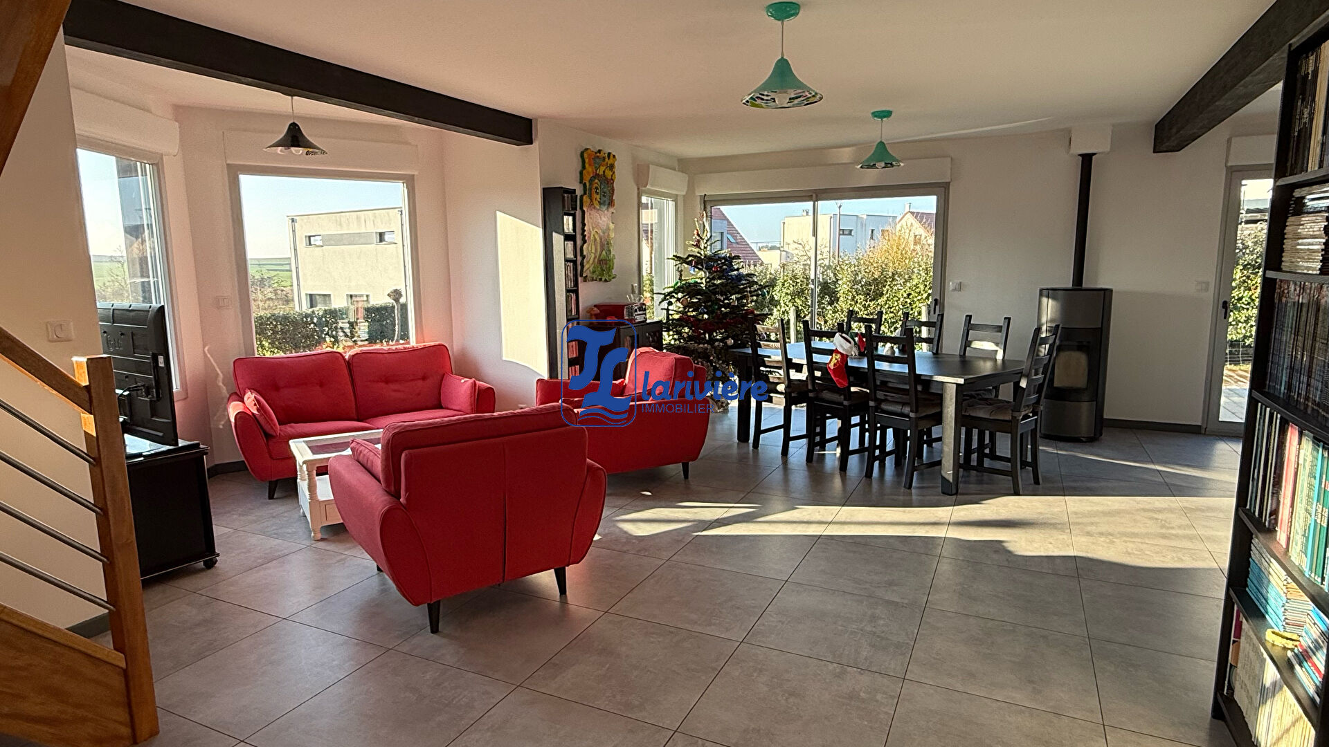 A quelques minutes de Wimereux, et à 5 minutes de Marquise, découvrez cette superbe maison individuelle de 134 m², implantée sur un spacieux terrain de 680 m². Elle se compose d'un hall d'entrée accueillant, d'un vaste séjour/cuisine de 47 m² offrant une vue imprenable sur la campagne (une cuisine ouverte et entièrement équipée), ainsi que d'un cellier. Au rez-de-chaussée, vous trouverez également une chambre et une salle de bain, ainsi que des WC séparés. A l'étage, le palier dessert quatre chambres lumineuses et une salle d'eau. Profitez également d'un abri de jardin de 12m², d'un jardin clos et d'une agréable terrasse vue dégagée pour vos moments de détente. Construction de 2017. DPE classé A, très rare à la vente ! Pour plus d'informations, n'hésitez pas à me contacter : Justine Briançon au 06.20.11.66.52. (5.00 % honoraires TTC à la charge de l'acquéreur.)