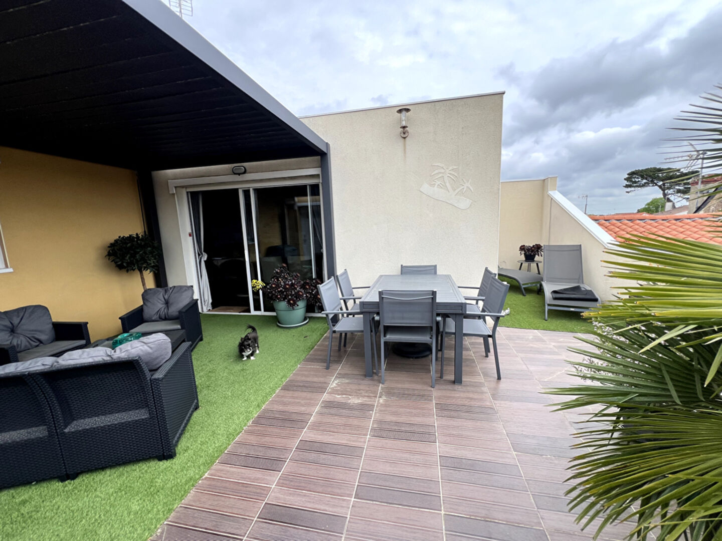 Produit rare ! Idéalement situé en plein centre-ville, et à seulement 500 mètres de la plage, ce très bel appartement en duplex de 153,27 m2 se trouve au 1er et dernier étage d'une très petite copropriété aux charges extrêmement faibles. L'accès se fait par escalier ou élévateur extérieur offrant confort et praticité. En parfait état, l'appartement séduit dès l'entrée par son très beau séjour-salon lumineux, ouvert sur une très belle terrasse, une cuisine américaine entièrement aménagée et équipée, il offre une chambre avec salle de bains et dressing attenants , une seconde chambre, cellier, WC A l'étage, deux chambres mansardées communicantes, idéales pour enfants, invités ou espace bureau. A l'extérieur, vous profiterez d'une très belle terrasse exposée sud-ouest, avec pergola et vue dégagée, parfaite pour les moments de détente ensoleillés. Un bien unique sur le secteur, alliant emplacement privilégié, calme, confort et prestations de qualité. Tous commerces à proximité immédiate . ? A saisir rapidement ! Copropriété de 8 lots - dont 8 lots habitation. (Pas de procédure en cours). Charges annuelles : 50 euros.