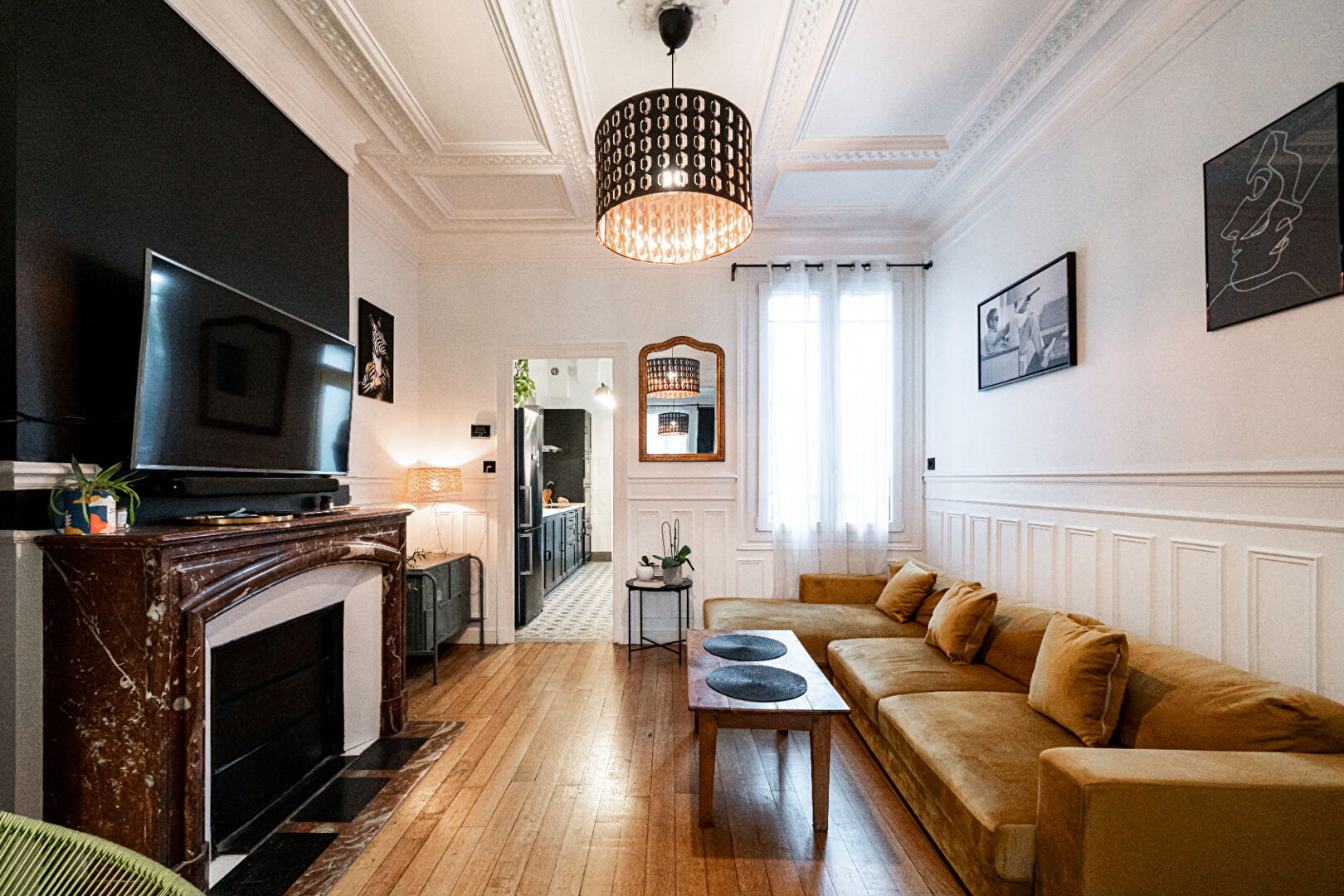 A proximité immédiate de la gare, secteur Clairmarais, au sein d'une petite copropriété bien entretenue, un appartement T2 au RDC. Celui-ci se compose d'un vaste salon avec cheminée, un séjour, une cuisine aménagée et équipée, une chambre, une salle de douches avec WC et dressing. Stationnement facilité. En sus un sous-sol pour le stockage de près de 30 m². Double vitrage PVC - Chauffage individuel gaz Disponible de suite 15 Rue de Courcelles 51100 Reims