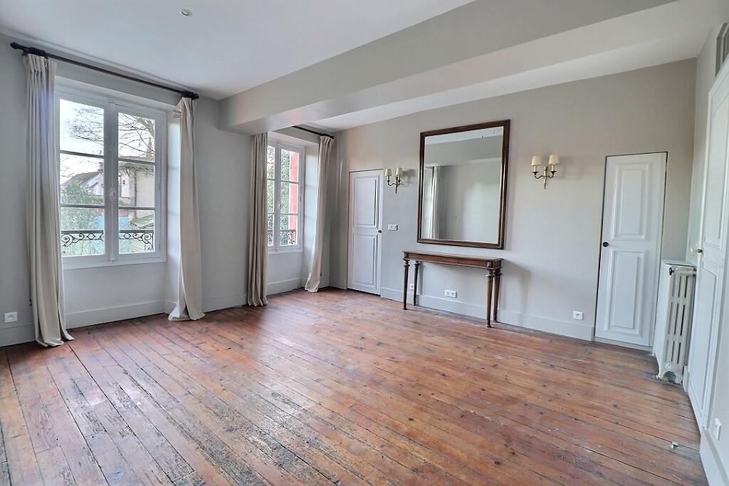 BAIL MEUBLÉ 3 ans. Maison ancienne, de 287m² environ sur jardin. Séjour avec cheminée, salon, salle à manger, cuisine équipée. 1er étage : 6 chambres enfants, suite parentale avec dressing, bureau, salle de bain, 2 salles de douche, lingerie. 2ème étage : 2 chambres sous velux. Dépendance : salle voûtée et cuisine d'été. Terrasse. Garage double. Alarme. Chauffage individuel fuel et gaz. Le prix de la location inclut l'entretien du jardin. Proche TRAM 13 (Saint Germain en Laye/Paris), bus, écoles. Carte scolaire collège Marcel Roby et lycée Jeanne d'Albret (78100).