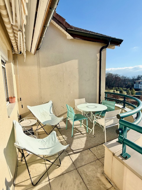 DIVONNE-LES-BAINS CENTRE-VILLE, Duplex dernier étage 177 m2 'Villa sur le toit' Exposition Sud-Ouest Vue parc et rivière Deux balcons Deux garages avec prises + cave