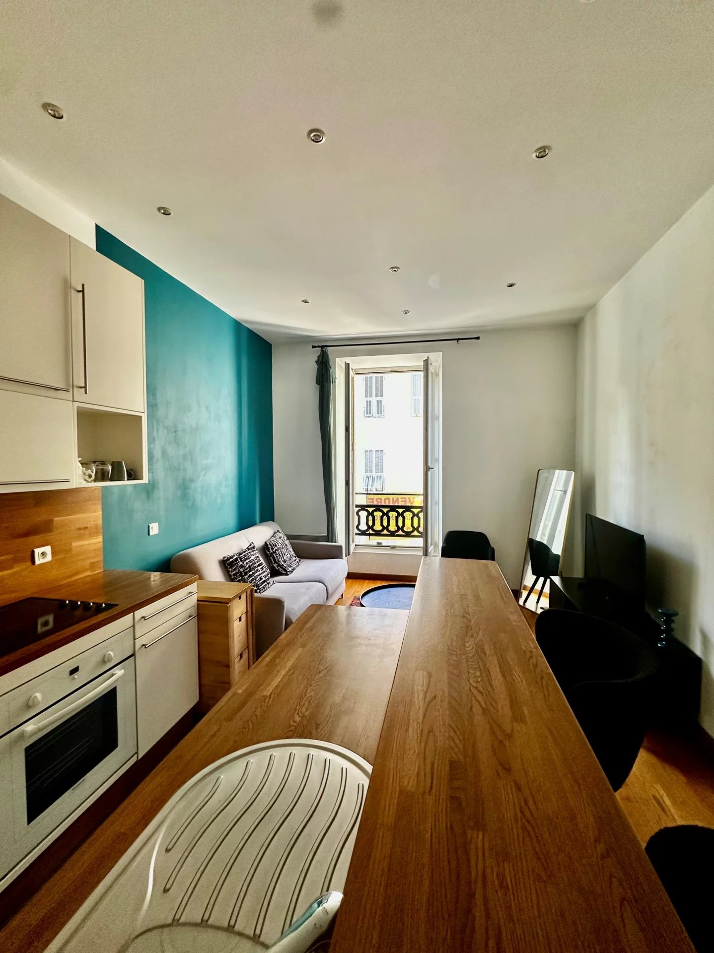 Exclusivité Nice, Nice Wilson Centre-Ville : Ce deux pièces très bien agencé sans perte de place se situe à proximité immédiate du Centre Ville, voisin du Lycée Masséna et très proche du Square Wilson, proche de la Coulée Verte et de la Place Masséna. Ce coquet deux pièces profite d’un environnement calme et pratique, il est vendu entièrement meublé. Tous les commerces, transports (bus et trams dont la plus proche station est Station Durandy) et services du quartier sont accessibles à pied, tout en préservant une atmosphère paisible au quotidien. Description de l’appartement: Ce lumineux deux pièces traversant exposé Ouest vendu entièrement meublé de 33,55 m2 Loi Carrez est bien agencé, il est en deuxième étage en bon état offrant une distribution très fonctionnelle et agréable. La cuisine aménagée s'ouvre sur le séjour exposé Ouest favorisant une belle continuité et luminosité entre le séjour et la cuisine. La salle de douche avec WC est spacieuse. Tous les espaces sont optimisés avec de très nombreux rangements. La chambre avec placards est séparée du coin jour et donne sur cour. L’appartement est libre de toute occupation permettant une installation rapide. 269900 euros commission à la charge du vendeur (honoraires agences inclus à la charge du vendeur) plus d'informations sur notre site, nos honoraires. Prix communiqué hors frais notariés, d'enregistrement et de publicité foncière Bien soumis au statut de la copropriété : - Nombre total de lots en copropriété : 45 - Nombre de lots à usage d’habitation, de commerces et de bureaux : 29 - Plan pluriannuel de travaux : en cours (source : syndic) - Pas de procédure en cours selon le syndic Diagnostics : - DPE : D - Émissions de gaz à effet de serre : D - Estimation des coûts annuels d’énergie pour un usage standard : entre 693 et 937 € Charges annuelles de copropriété : - 1000 € / an. Elles comprenennent: ascenseur et entretien courant de la copropriété. Surface Carrez : 33,55 m² Taxe foncière : 913 euros Les informations sur les risques auxquels ce bien est exposé sont disponibles sur le site Géorisques : georisques.gouv.fr Non détention de fonds SIREN 492 556 436