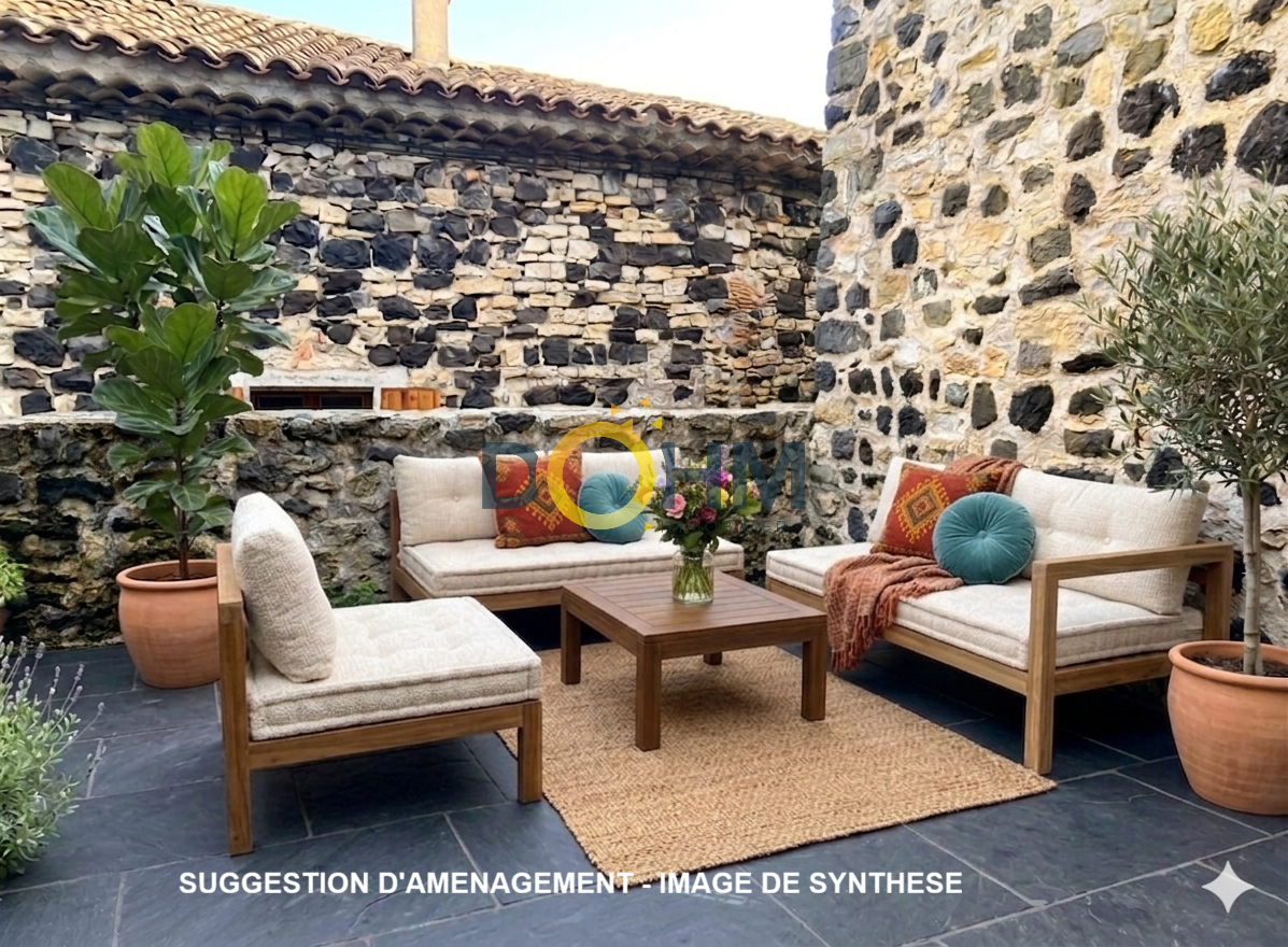 Au coeur du village de Mirabel, jolie maison de village de 97m2 en pierre avec 2 chambres principales et une belle terrasse permettant de manger facilement à l'extérieur et de profiter du soleil. Les espaces intérieurs ont été rénovés. L'habitation dispose de 2 poêles à bois , de radiateurs avec possibilité d'utiliser la chaudière à granulés de l'habitat participatif mitoyen (installation déjà effectuée).