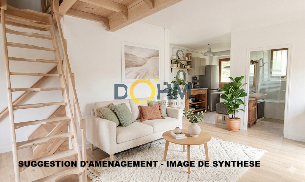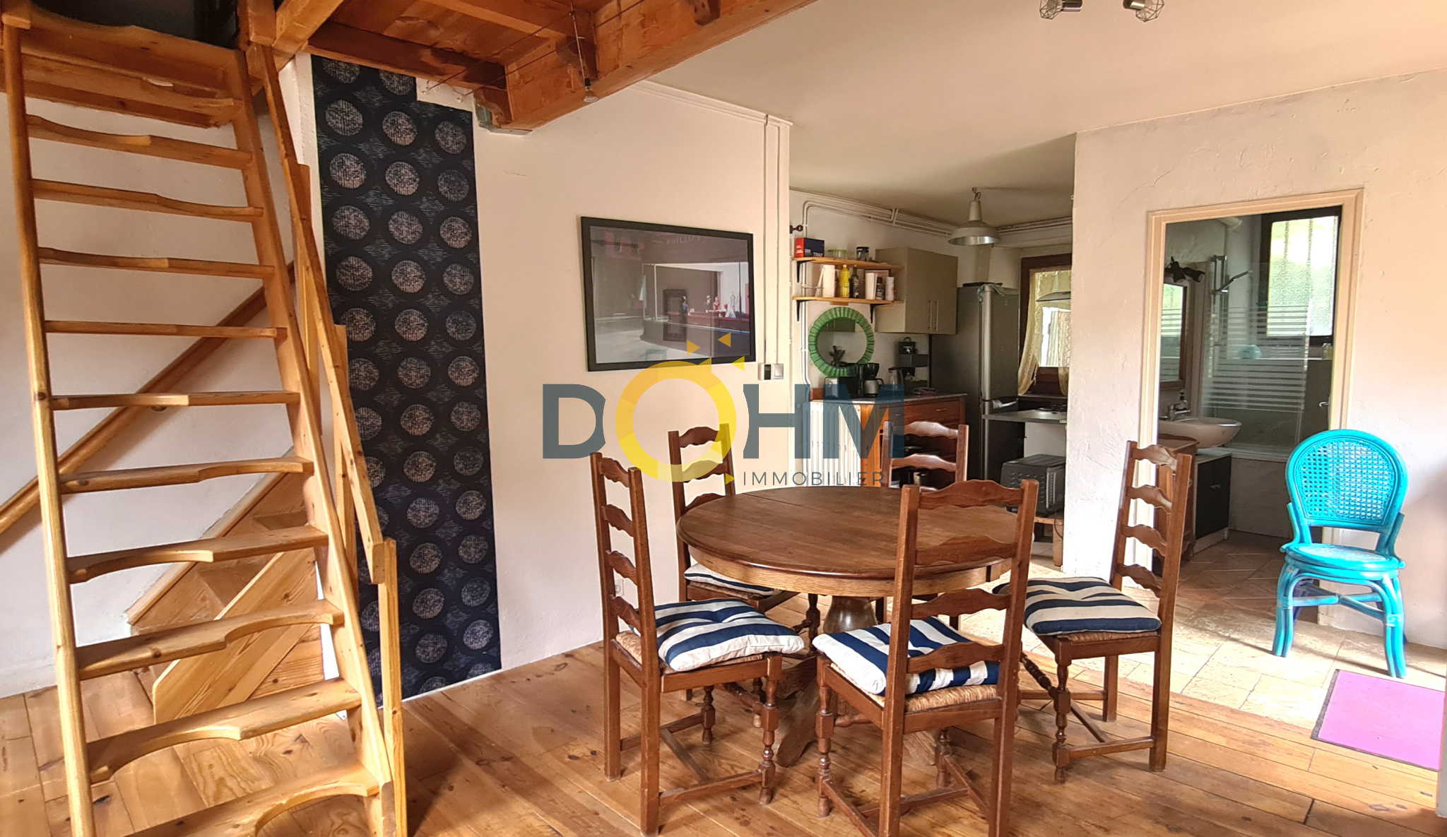 Ce bien est constitué d'un séjour donnant sur la terrasse avec cuisine ouverte équipée, une salle de bain, de cet espace on accède au niveau supérieur par un escalier en bois où se situe une grande chambre mansardée, puis par un autre escalier indépendant à un autre petit espace pouvant servir de chambre d'appoint . Au niveau inférieur, la maison bénéficie d'une grande pièce voûtée disposant d'une entrée directe depuis la rue permettant d'utiliser éventuellement cet espace pour de la location saisonnière.