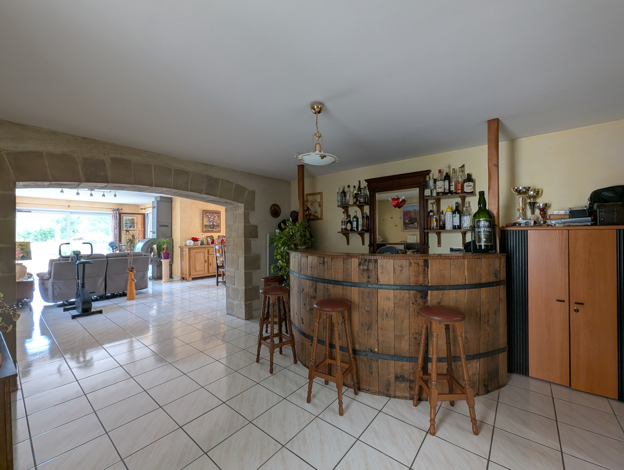 Offrant une cuisine d'environ 12 m2 ouverte sur la pièce de vie de 56 m2, elle communique également avec une véranda de 14 m2, qui agrandit l'espace.