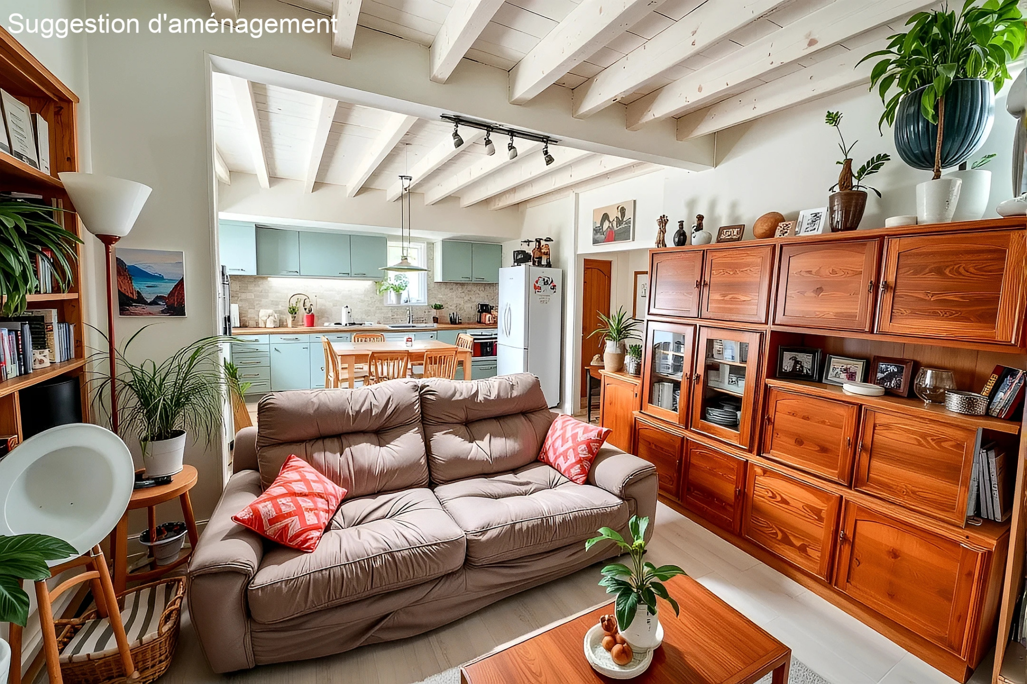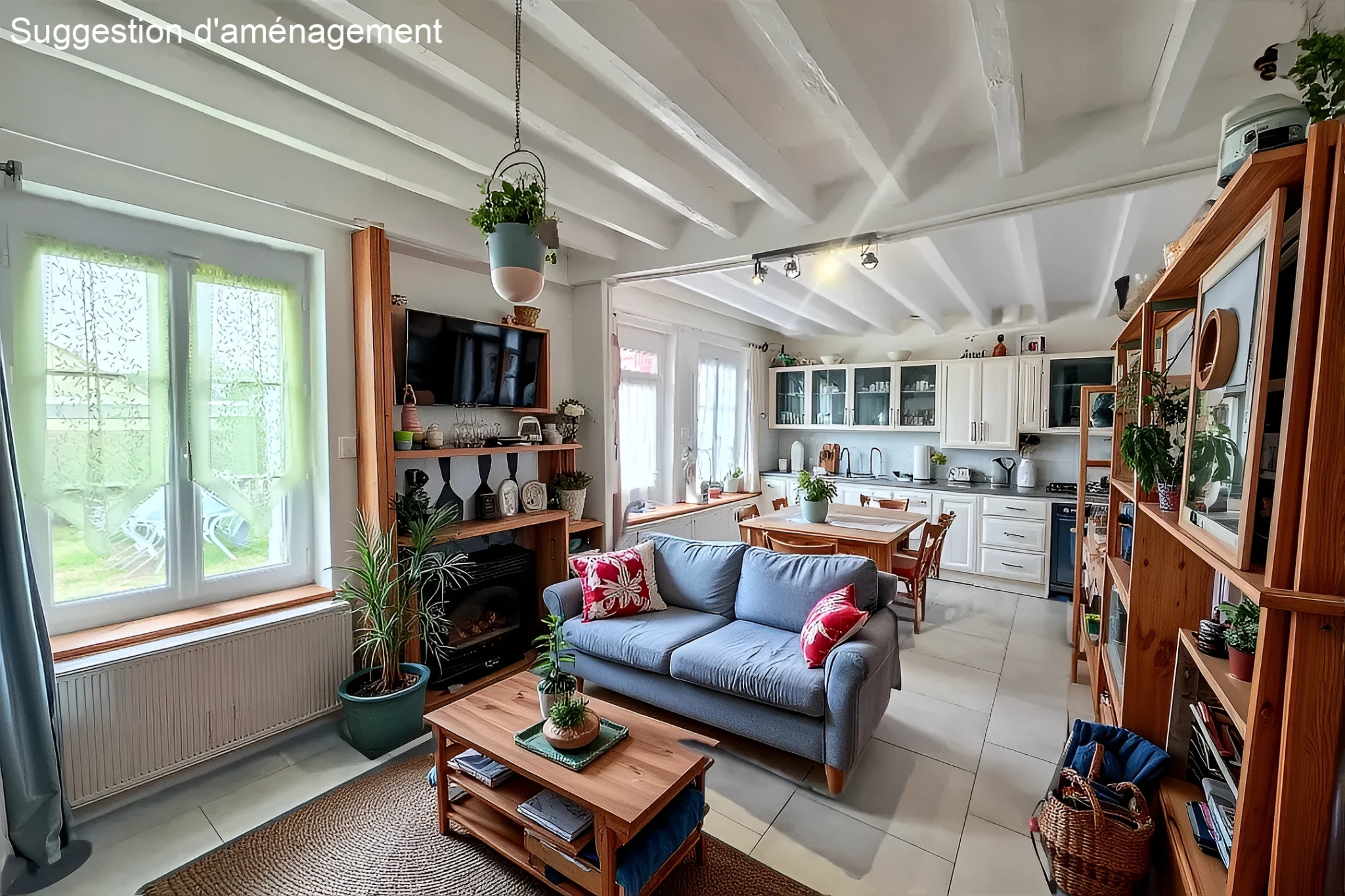 Cette charmante maison vous accueille avec une grande pièce à vivre lumineuse où la cuisine ouverte se prolonge naturellement vers le salon séjour Un espace nuit composé d'une chambre confortable et d'un bureau complètent l'ensemble, ainsi qu'une salle d'eau fonctionnelle avec WC.