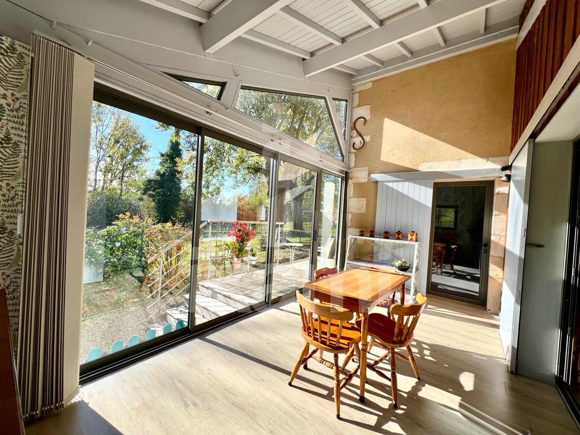 Entièrement rénovée entre 2013 et 2015 par des artisans locaux, et des matériaux de qualité, la maison allie charme d'origine et confort moderne. Une extension en bois, conçue par un architecte, optimise les volumes et apporte une belle luminosité. Elle comprend une vaste cuisine dînatoire de près de 39 m2, agrémentée d'un poêle à bois, qui s'ouvre sur une terrasse surélevée. Une véranda plein sud de 14 m2 offre un agréable espace de vie baigné de lumière avec vue sur le jardin. De plain-pied, on accède au salon de 24 m2 ainsi qu'à une chambre suitée de 14 m2, dotée d'un système de climatisation, de sa salle d'eau avec double vasque et douche à l'italienne, et de toilettes séparées. L'étage accueille deux chambres climatisées supplémentaires de 16 et 17 m2 environ, une salle d'eau et WC indépendants complètent ce niveau, le tout avec une belle hauteur sous plafond.