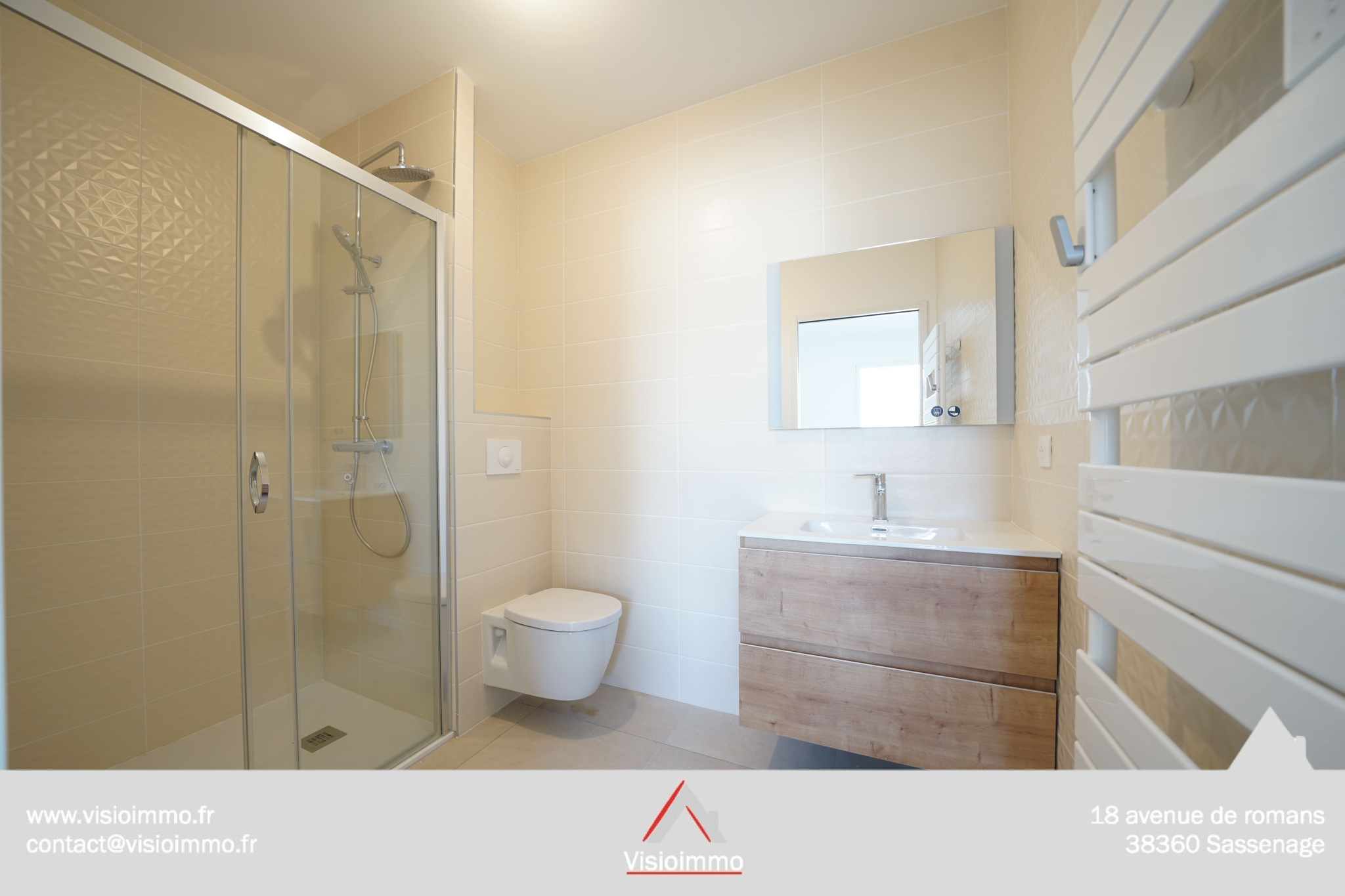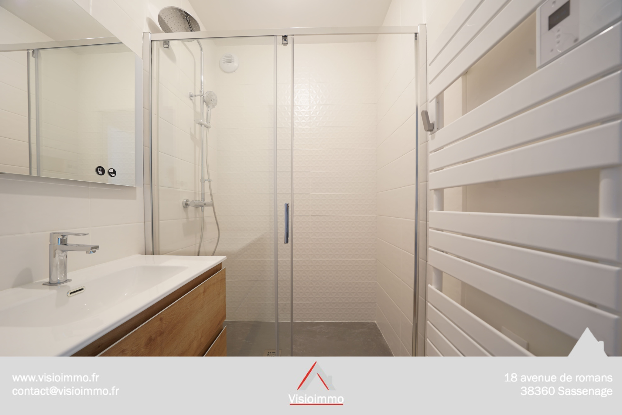 - une seconde chambre de 14 m2 avec placard et salle d'eau moderne (douche à l'italienne, meuble vasque, sèche-serviette)