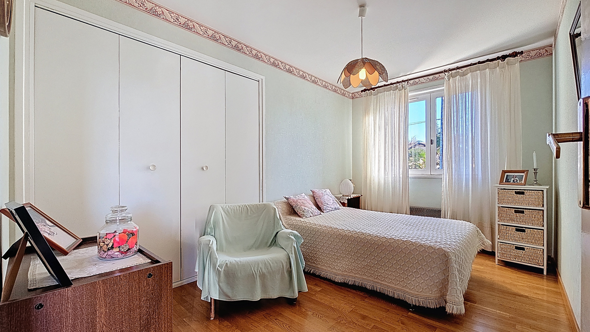 Au même niveau, 2 chambres avec grands placards muraux, une salle de bain généreuse avec fenêtre, un toilette indépendant et un escalier intérieur pour accéder au rez-de-chaussée. De plus, Il est possible de recréer une 4ème chambre à ce niveau.