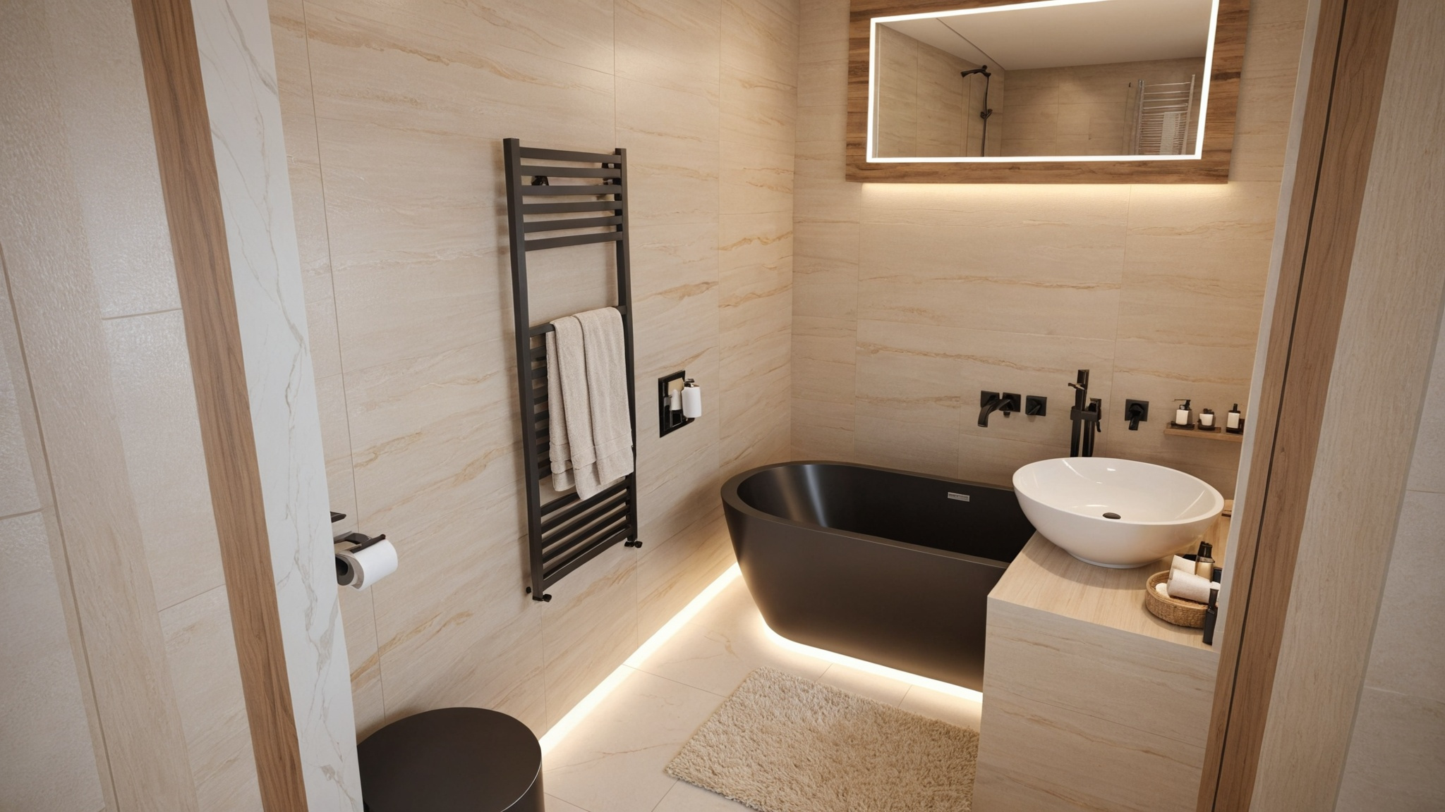 Menuiseries françaises Millet, reconnues pour leur isolation et leur design soigné Climatisation réversible Mitsubishi dans toutes les pièces pour un confort idéal été comme hiver