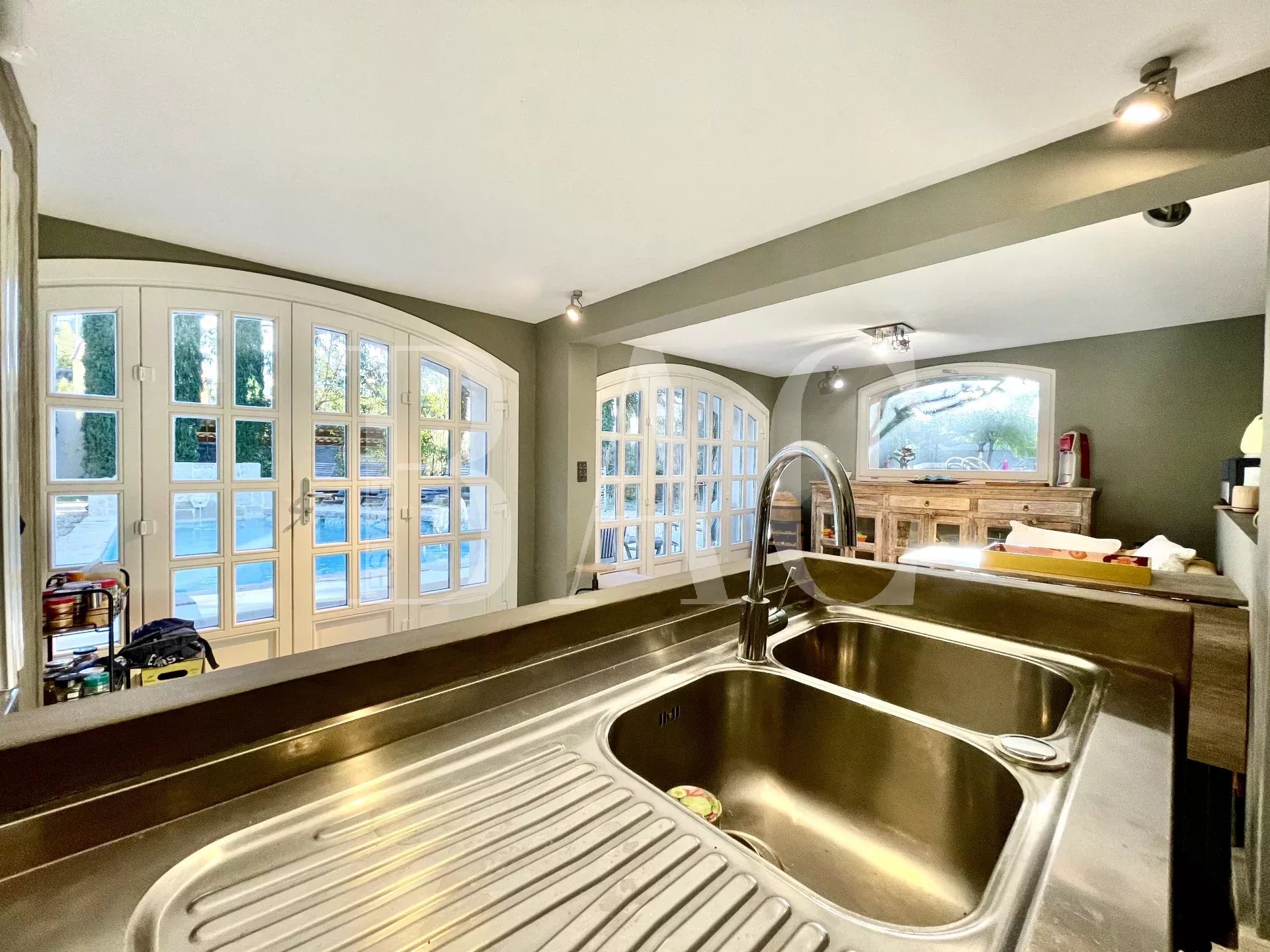Vi sono anche un orto, alcuni alberi da frutto e una piscina a forma libera.