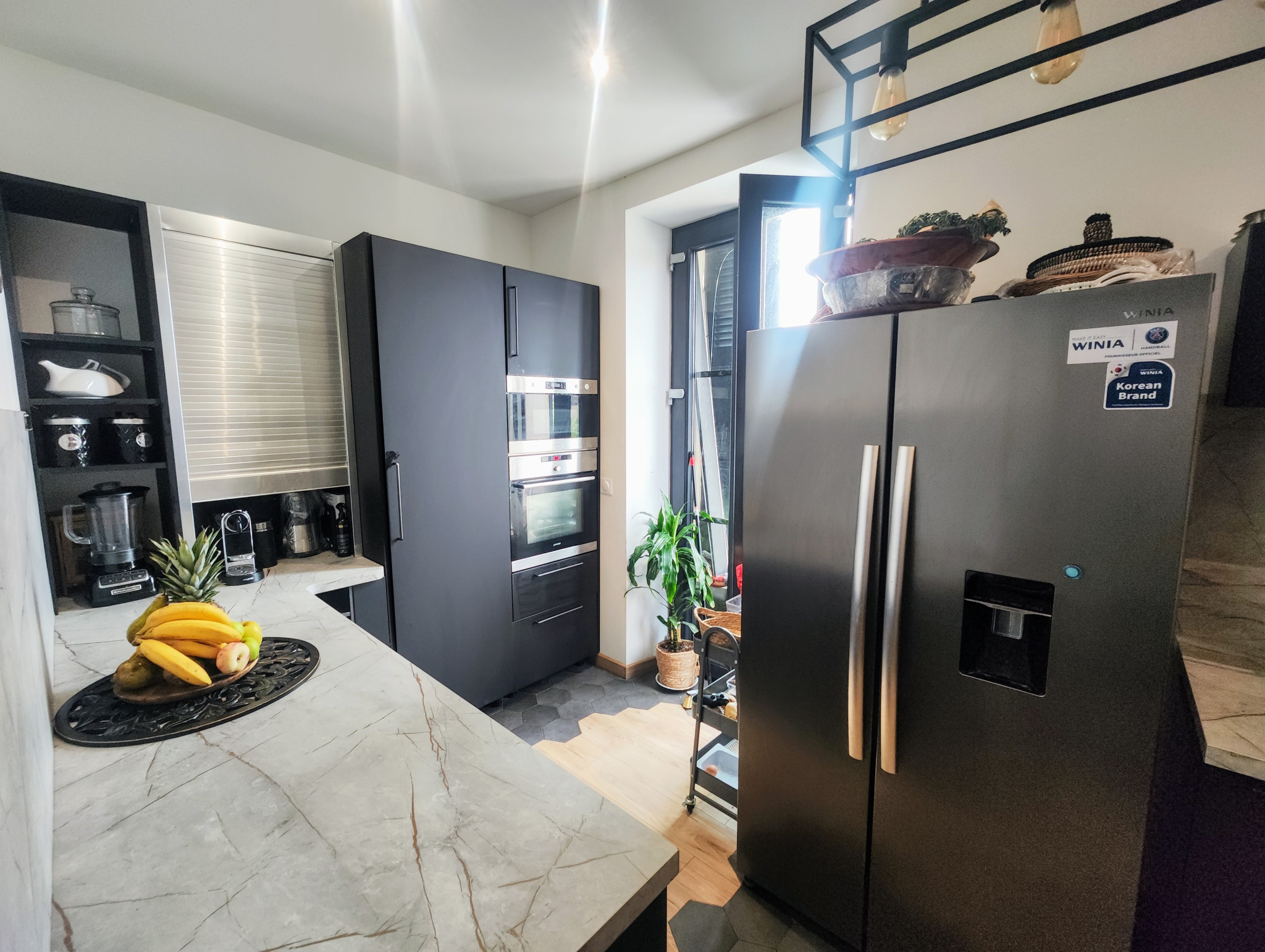 Au sein d'une ancienne bâtisse, RARE sur le secteur, charmant appartement en duplex d'environ 150m2 Loi Carrez, 170m2 habitables au premier et deuxième niveau. Il se compose comme suit :