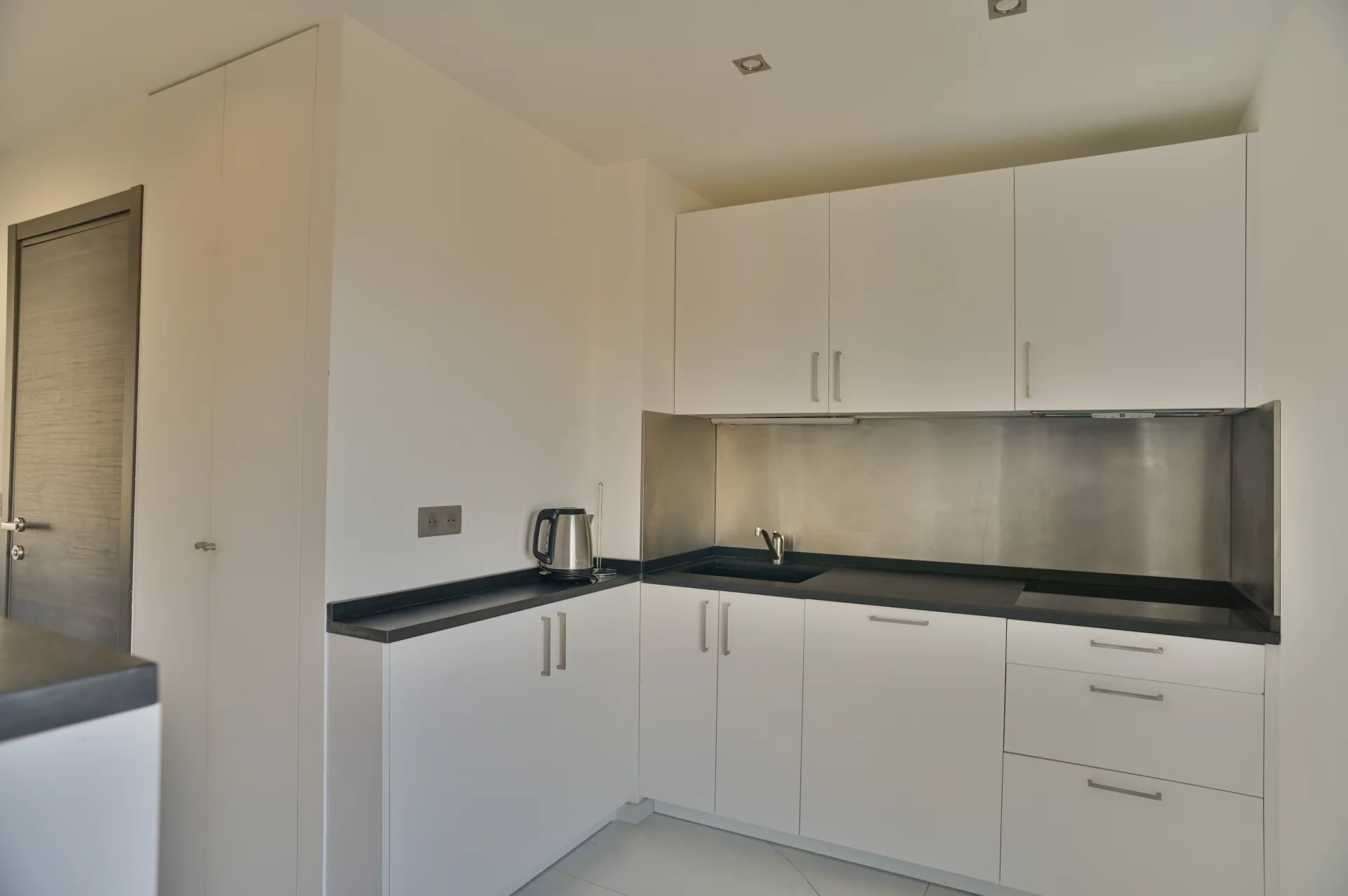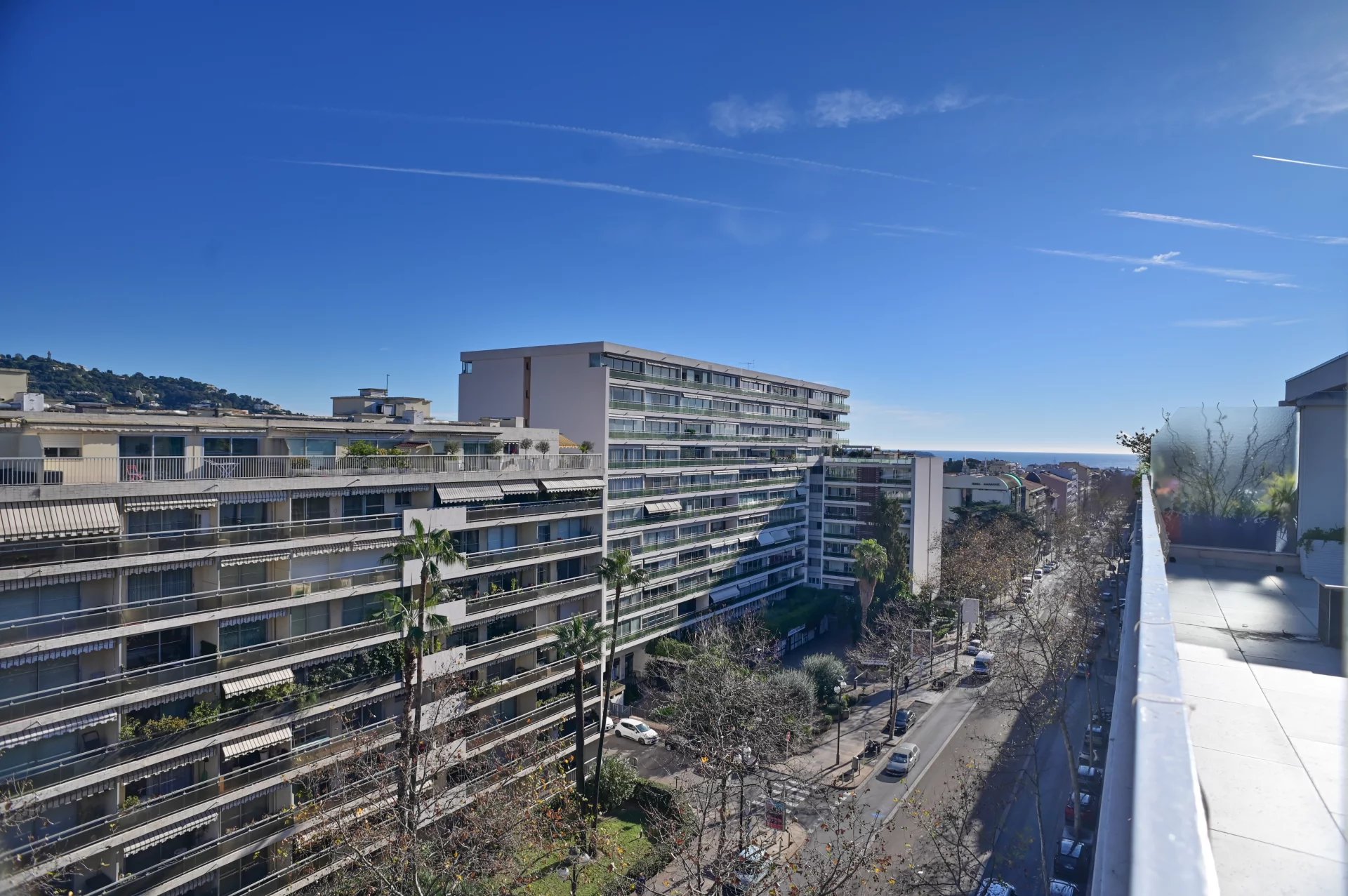 Exclusivité - L’appartement dispose d’un vaste et lumineux séjour avec accès direct à une terrasse offrant une vue panoramique, ce qui en fait un lieu idéal pour se détendre à tout moment de la journée. La cuisine entièrement équipée s’ouvre sur une seconde terrasse, apportant un espace de vie extérieur supplémentaire. Le bien comprend deux chambres confortables, chacune avec accès à une terrasse et sa salle de bains privative avec toilettes, garantissant confort et intimité. L’appartement est baigné de lumière naturelle et aménagé avec beaucoup de soin et d’élégance. Les sols en marbre clair, les éléments en verre et les finitions raffinées créent un intérieur harmonieux et sophistiqué. Situé au dernier étage, l’appartement est accessible par ascenseur, puis par quelques marches supplémentaires, ce qui renforce l’intimité et le caractère exclusif du bien. Malgré sa situation centrale sur Boulevard Carnot, l’appartement est particulièrement calme, un atout rare et très recherché en centre-ville. Le bien est complété par une cave ainsi que par une place de parking privative en garage, un avantage considérable au cœur de Cannes. Quote-part des charges: 300 €/mois. Nombre de lots principaux: 140.Pas de procédure en cours à notre connaissance. Les informations sur les risques auxquels ce bien est exposé sont disponibles sur le site Géorisques: georisques.gouv.fr