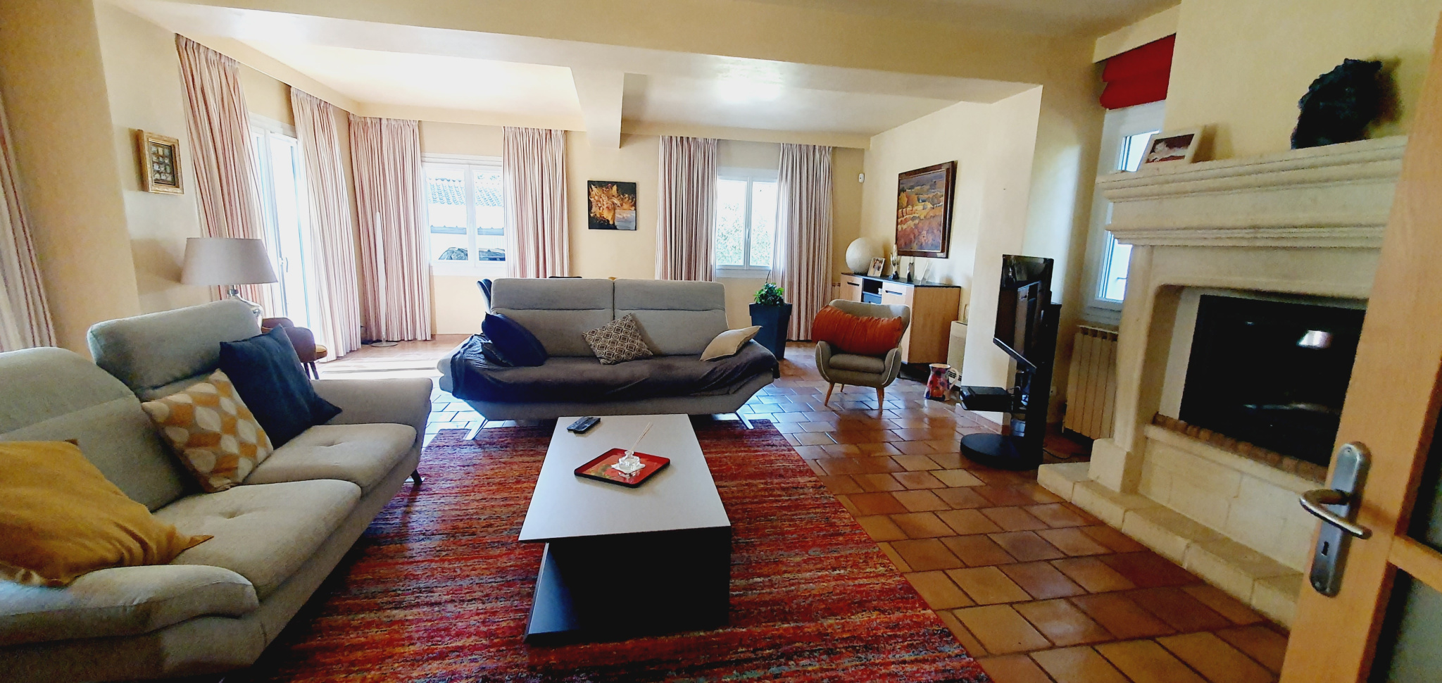 Les prestations sont au rendez-vous : portail automatique, double vitrage pvc de partout, pompe à chaleur et climatisation réversible. Sol en terre cuite.