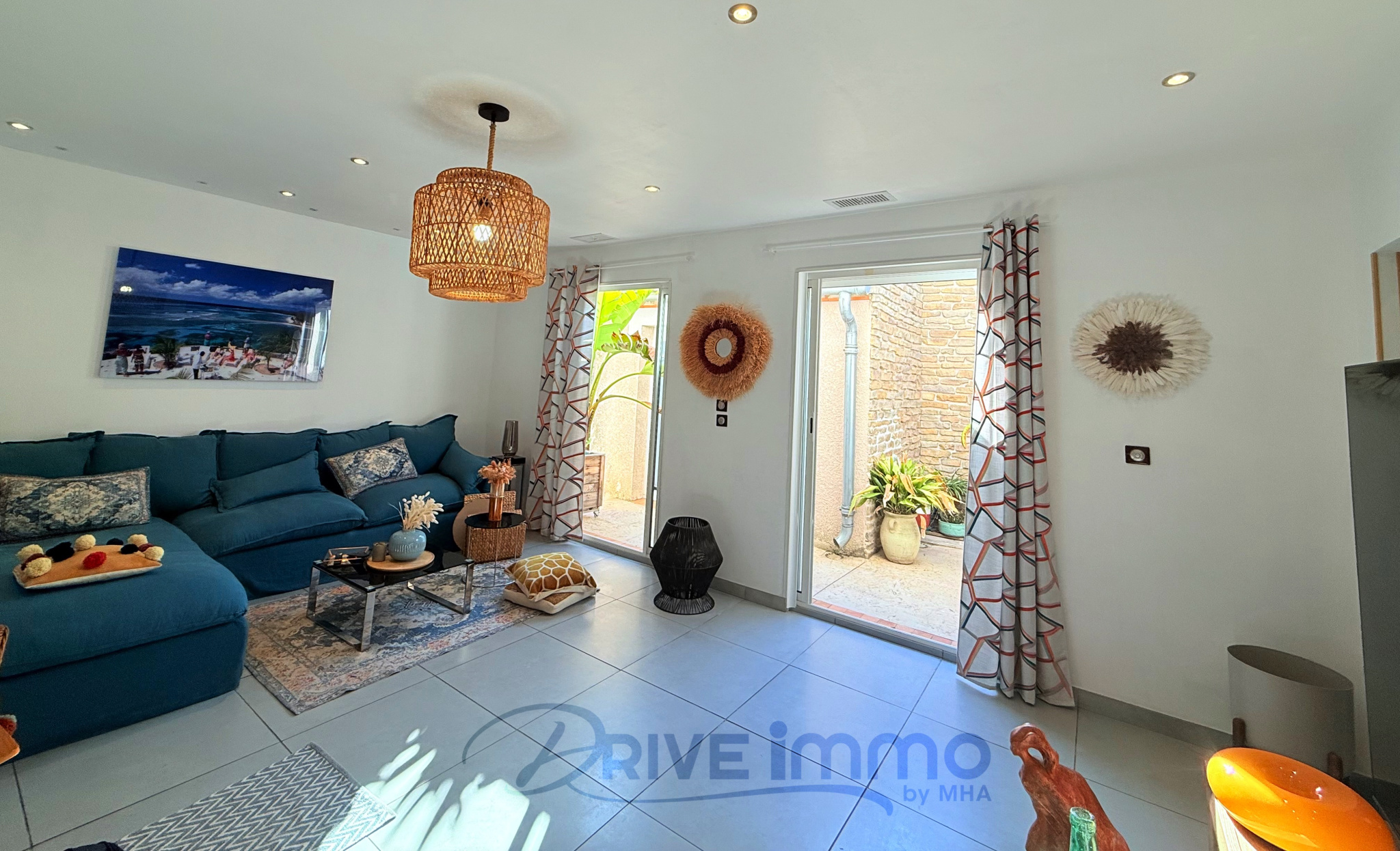 DRIVE IMMO Narbonne Vous présente...Villa de plain-pied Nissan-lez-Enserune.. Le charme de l'ancien allié au confort moderne... Dans un environnement résidentiel calme et privilégié, au fond d'une impasse, découvrez cette villa d'architecte de plain-pied entièrement rénovée, développant environ 200 m2 habitables sur un terrain clos et paysagé de 800 m2. La maison, conçue en forme de U autour d'un patio intérieur, se compose de :