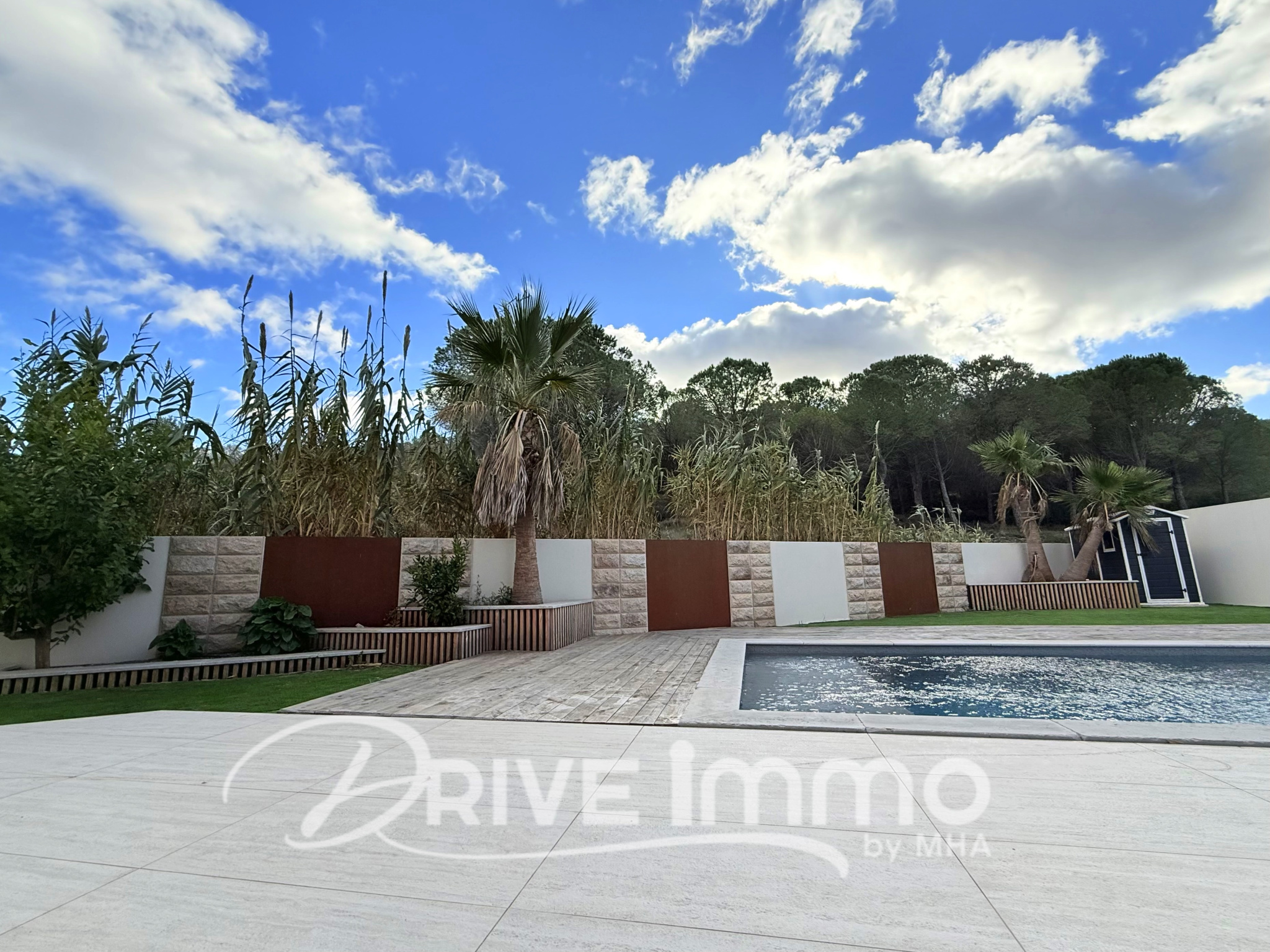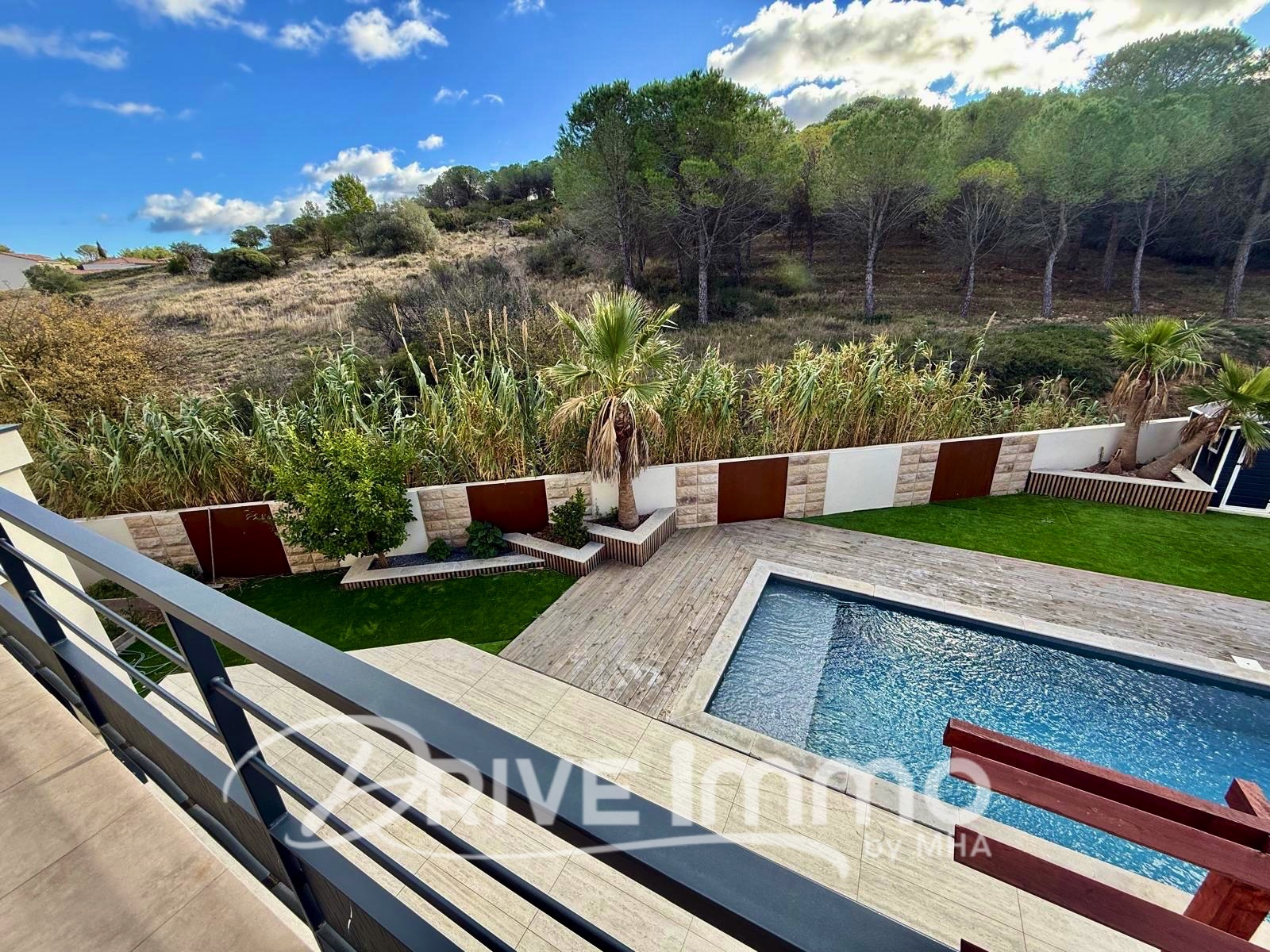 DRIVE IMMO Vous dévoile LE BIJOU NARBONNAIS... Dans le très prisé secteur de Crabit, cette villa contemporaine de 147 m2, édifiée sur un terrain de plus de 500m2, dévoile un cadre de vie absolument unique, où la nature sauvage devient votre seul horizon. Ici, aucun vis-à-vis, aucune mitoyenneté : simplement le calme absolu, la tranquillité d'une vue rare sur les pins et la campagne méditerranéenne. Le charme d'une propriété libre sur trois faces, conçue pour ceux qui recherchent un lieu de vie exclusif et privilégié. Dès l'entrée, l'élégance et la fluidité des espaces se ressentent. Un hall discret et fonctionnel mène vers un séjour d'une ampleur exceptionnelle, magnifié par deux immenses baies vitrées qui ouvrent littéralement la maison sur l'extérieur. La lumière s'invite à toute heure et glisse jusqu'à la terrasse carrelée, où la piscine traditionnelle, dotée d'un liner armé, s'intègre parfaitement aux lignes contemporaines de l'ensemble. La cuisine américaine, aménagée et équipée, s'impose naturellement comme un espace de partage et de convivialité, pensé pour recevoir, et créer des instants mémorables. Le rez-de-chaussée abrite également une suite parentale raffinée, avec son espace dressing et sa salle d'eau avec douche à l'itlaienne et toilettes. Une buanderie indépendante et ou bureau, ainsi que des toilettes séparées avec lave-mains complètent ce niveau pensé pour offrir confort et facilité au quotidien. Un sublime escalier mêlant métal et bois conduit à l'étage, où deux chambres élégantes prolongent l'esprit apaisé du lieu. Chacune ouvre sur un balcon terrasse dévoilant un panorama intact sur la campagne. Une vaste salle d'eau, équipée d'une douche et de toilettes, apporte une touche supplémentaire de confort et de sophistication. Les extérieurs, minutieusement végétalisés et pourtant sans entretien, enveloppent la maison d'une atmosphère paisible. Une cuisine d'été prolonge l'art de vivre méditerranéen, tandis que le garage carrelé de plus de 16 m2 ajoute une note pratique et qualitative à l'ensemble. La climatisation gainable assure enfin un confort optimal en toute saison. Impeccablement entretenue, harmonieusement pensée et idéalement située, cette maison est bien plus qu'une propriété : c'est un lieu rare, une expérience, une invitation à vivre la nature et la modernité dans une parfaite harmonie. Une opportunité exceptionnelle pour une famille en quête d'un cadre de vie exclusif, intime et résolument contemporain