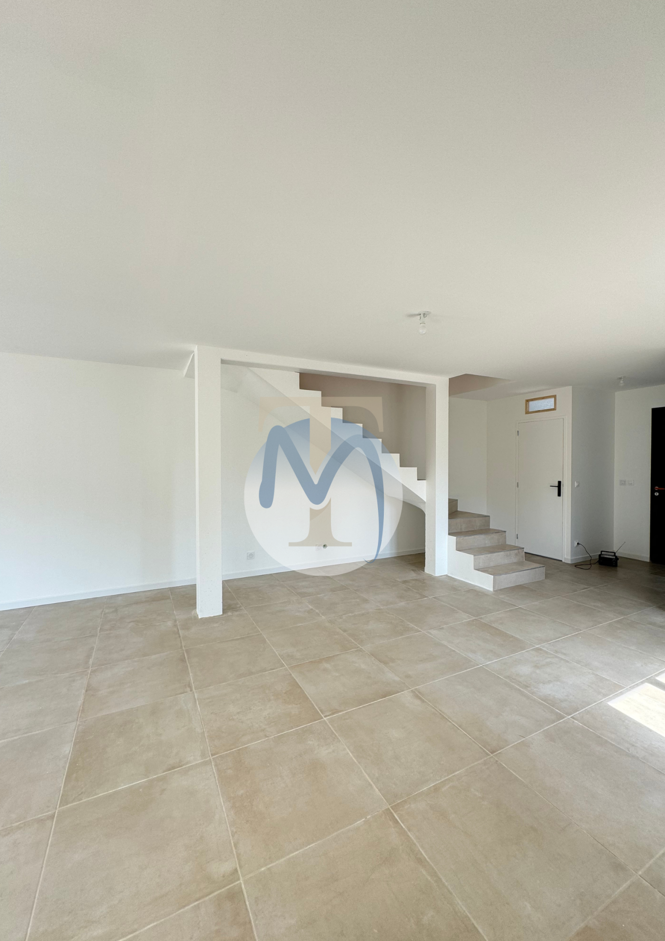 Avec une surface habitable de 108 m2, elle se compose au rez-de-chaussée d'une entrée avec WC visiteur, d'une buanderie, et d'une spacieuse pièce de vie de plus de 50 m2 offrant un bel espace pour votre future cuisine (à aménager selon vos envies). De larges baies vitrées baignent la pièce de lumière et ouvrent sur le jardin.