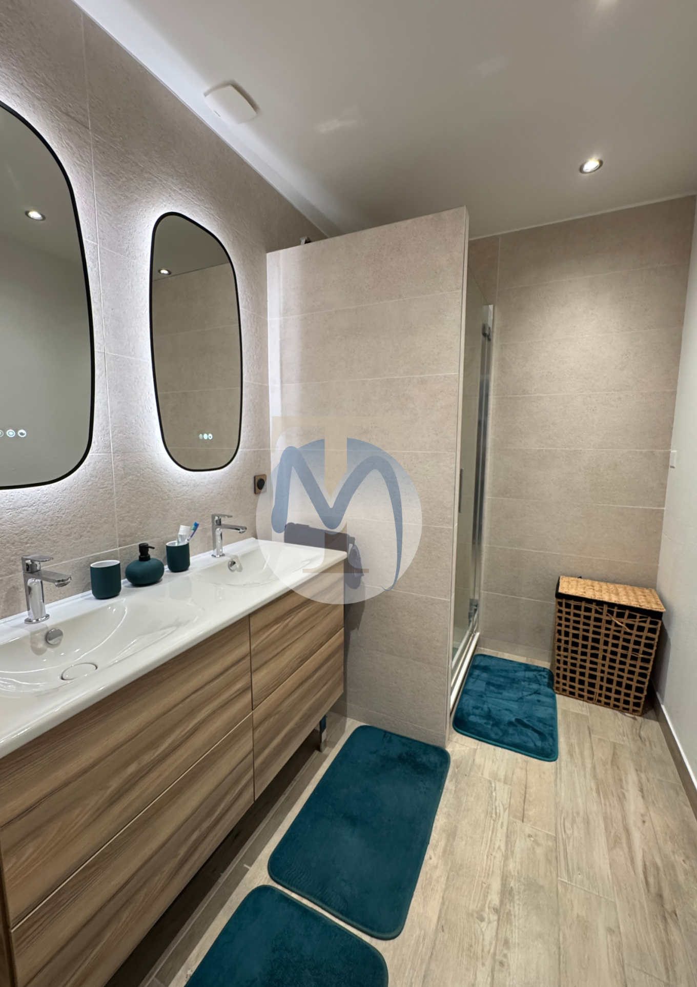 Située dans une résidence sécurisée, découvrez cette agréable villa de plain-pied, en 3 faces, offrant une surface habitable d'environ 80 m2 sur un terrain de 200 m2. Elle se compose d'une entrée menant à une cuisine semi-ouverte entièrement équipée, ainsi qu'à un lumineux salon-séjour exposé sud-ouest. L'espace nuit comprend trois chambres avec placards intégrés, une salle d'eau récemment rénovée, et des toilettes séparées. Côté extérieur, vous apprécierez un jardin joliment arboré avec piscine, terrasse et un coin cuisine d'été, idéal pour vos moments de détente. Un garage indépendant et la climatisation complètent les prestations de cette maison prête à emménager.