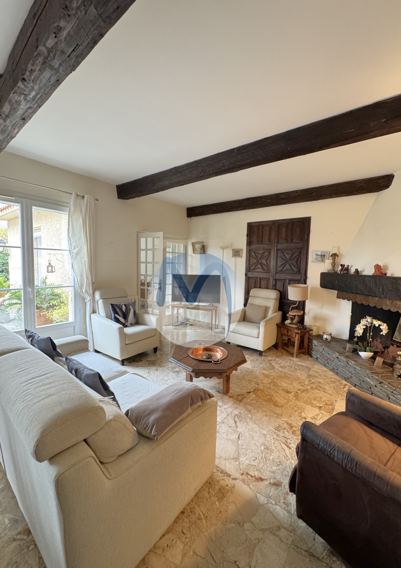 À Cabestany, découvrez cette villa aux accents méditerrannéens 4 faces, d'une surface habitable de 215 m2, nichée au sein d'un magnifique parc arboré de 2 023 m2, au calme et sans vis-à-vis. De plain-pied, vous serez séduit par son entrée lumineuse, sa vaste pièce de vie avec cheminée, et sa cuisine indépendante entièrement équipée avec espace repas. L'espace nuit propose deux belles chambres, une salle d'eau avec wc, ainsi qu'une suite parentale de 19 m2 avec salle de bain, douche et dressing. Une quatrième chambre avec placard, un cellier et un wc indépendant complètent ce niveau. À l'étage, un dégagement dessert une vaste pièce mansardée pouvant faire office de bureau ou de chambre, accompagnée d'une salle d'eau et d'un dressing. Côté extérieur, vous profiterez d'un garage de 20 m2, une allée voiture avec plusieurs places de stationnement, d'une grande terrasse et d'une piscine 5x10 entourée d'un superbe jardin paysager. Vous serez séduit par le charme, les volumes et la tranquilité de ce bien très rare sur le marché.
