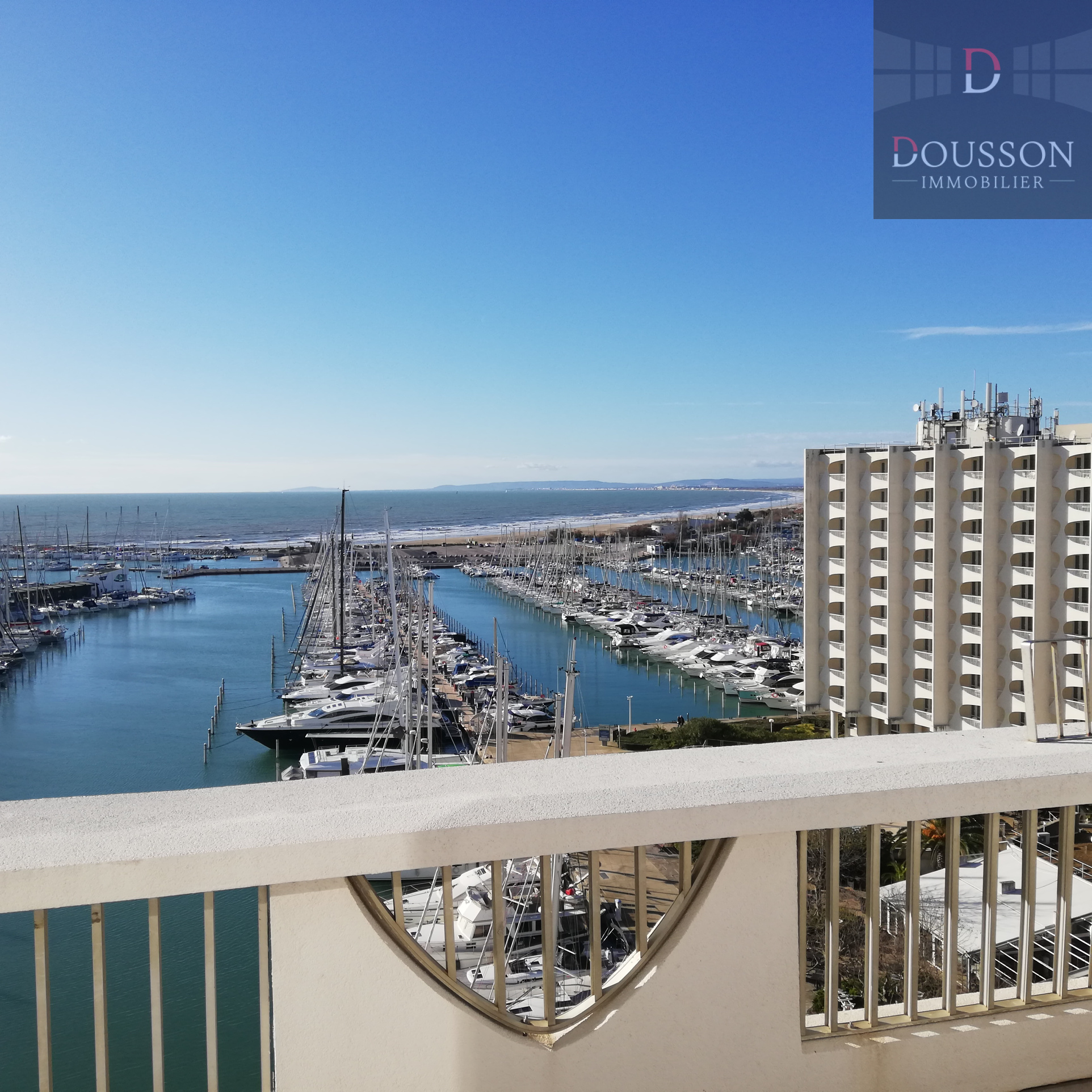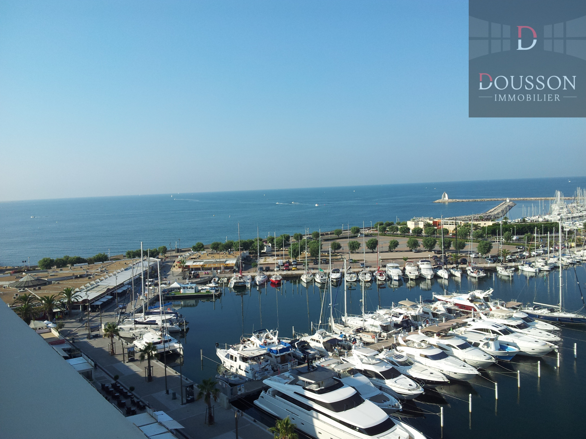 et GRANDE TERRASSE à LA GRANDE MOTTE. L'appartement possède 3 CHAMBRES, une salle d'eau, une buanderie,POSSIBLE second salled'eau) , une CUISINE SEPAREE ET EQUIPEE et un COIN SALLE A MANGER, ainsi qu'un SALON de 23m2. Sa surface intérieure habitable mesure 103M2. Le logement s'accompagne d'une TERRASSE occupant 65M2 pour profiter de cette magniifique VUE panoramique PORT ET MER, ce qui porte la surface de l'ensemble à 168m2.