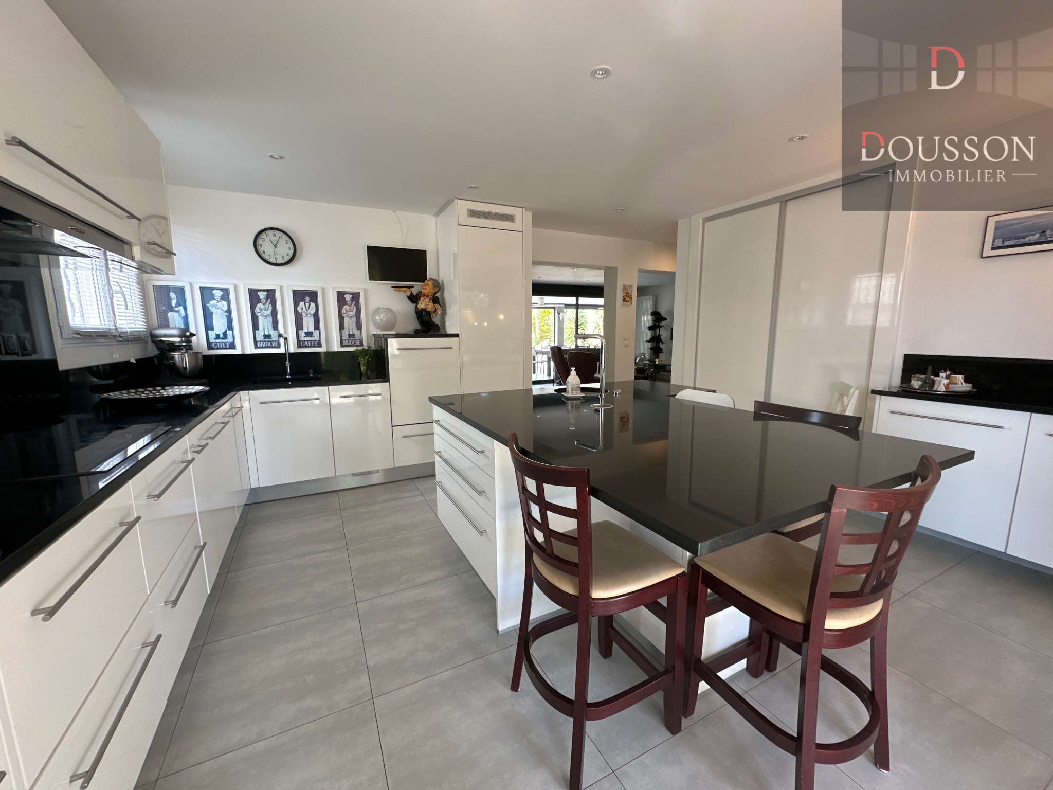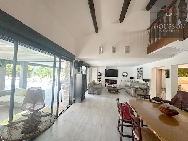 Villa contemporaine à Saint-Laurent-d'Aigouze, village authentique de la Petite Camargue, à 15 min de la sortie d'autoroute entre Nîmes et Montpellier et 15 min des plages. Ce bien se compose d'un hall spacieux, d'une cuisine équipée haut de gamme avec plan de travail en marbre, électroménagers haut de gamme, salon-séjour de plus de 50 m2 donnant sur baies vitrées et vue piscine, 2 suites parentales avec salle d'eau dont une avec WC, une lingerie ou buanderie, un WC séparé. À l'étage : une mezzanine de 20 m2 , 3 chambres (12 m2, 18,50 m2, 20,50 m2), une salle de bain et une salle d'eau de 12,80 m2. Idéale pour grande famille ou location saisonnière, très forte rentabilité. Tout est neuf et rénové avec des matériaux de qualité : doubles vitrages, baies vitrées aluminium, portes à galandage, climatisation gainable, pompes à chaleur, cumulus thermodynamique, volets roulants avec fermeture centralisée, forage, piscine chauffée avec liner neuf, jardin paysager avec espace détente, pergola bioclimatique motorisée, ventilateur à air, espace four à pizza, barbecue et plancha, cuisine professionnelle équipée côté terrasse et volets roulants, douche extérieure solaire, local extérieur de rangement, pool-house, garage métallique, nombreux rangements. Vendu meublé , Pour toute visite, n'hésitez pas à me contacter : Angela FOTI 06 72 23 12 03.