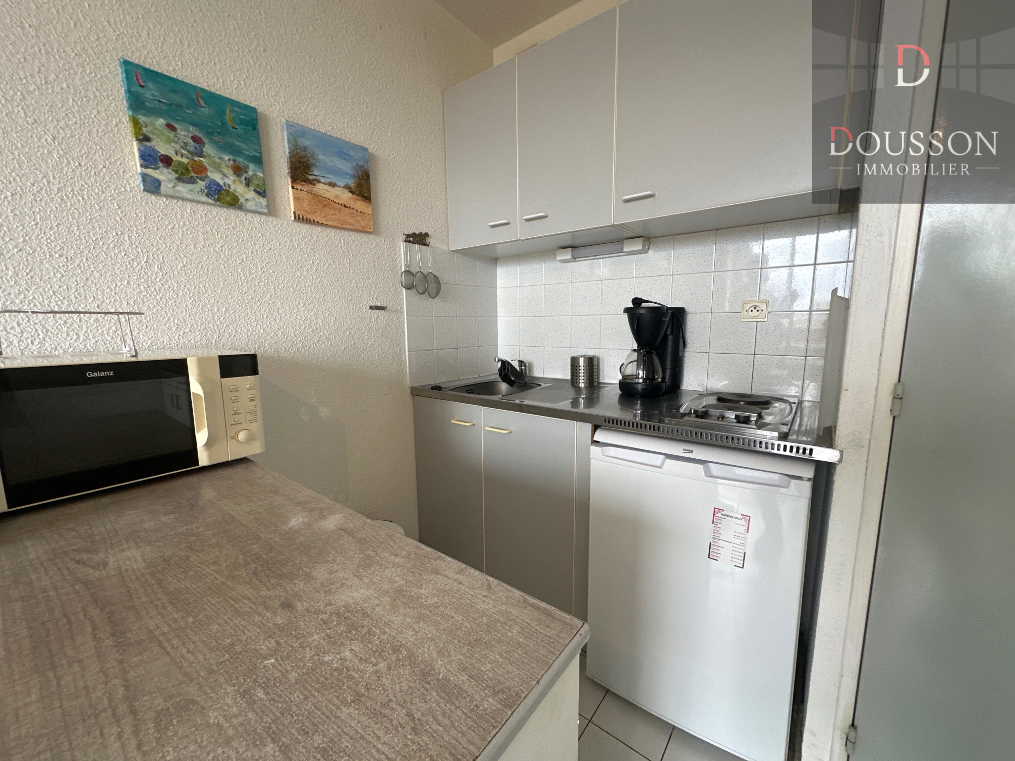 Dans résidence au 2 ème étage , proche plage du séquarium, studio cabine composé d'un coin couchette avec placard, une kitchenette donnant sur séjour, une salle de bain, wc séparé, vendu meublé